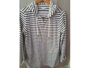 Abrigo a rayas azul y blanco