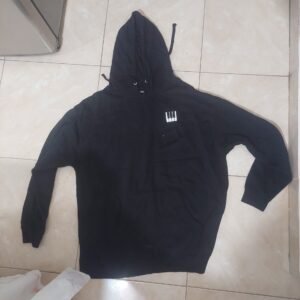 Abrigo color negro con estampado de circulos, marca zawary, con siper.