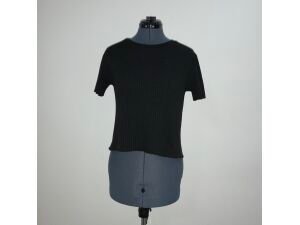 Blusa negra, marca ZARA. Con cuello redondo y manga corta. Tela stretch con relieve.