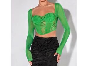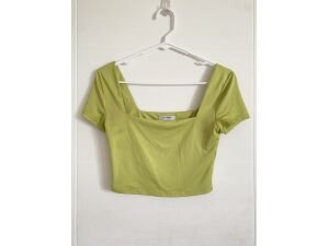 Top verde manga larga. Usado 2 veces sin ningún daño. Super combinable y el color es muy lindo. Tiene una abertura forma V en el cuello. La tela es estirable.