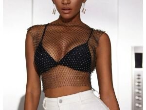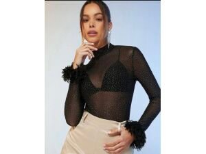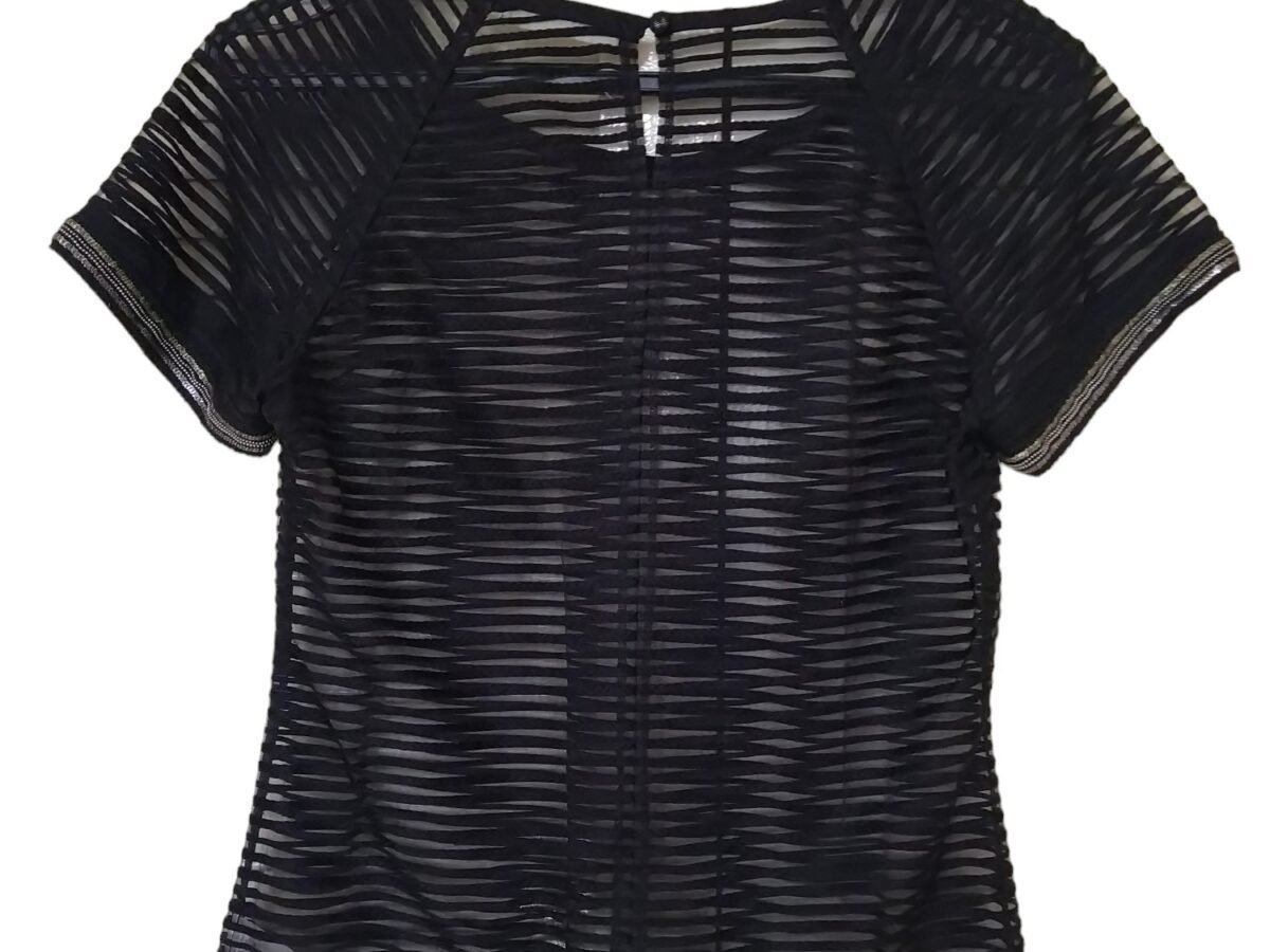 Completamente nuevo. Top negro con faralaos. Ideal para salidas nocturnas. Los hombres puedes colocarse hacia arriba o hacia abajo, lo que lo hace versátil. Tela de calidad y tiene tira adhesiva interior que le permite mayor agarre en la piel.