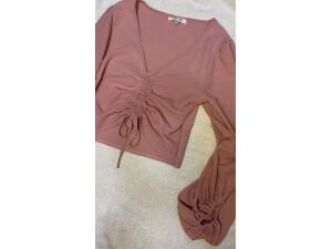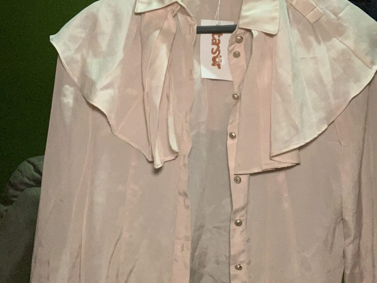 Blusa de embarazo, es talla s, es muy fresca, la tela es como si fuera de jeans pero es delgada y suave. tiene un pequeño detalle que se muestra en la foto pero no se ve por el cuello.
