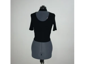 Blusa cuello alto con escote en U (negra), marca Bershka. Con mangas francesas. Tela stretch con relieve.
