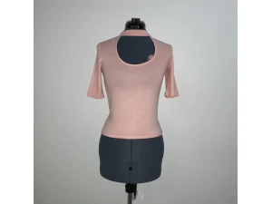 Blusa cuello alto con escote en U (rosa), marca Bershka. Con mangas francesas. Tela stretch con relieve.