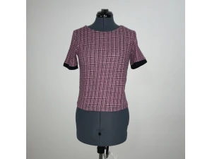Blusa elegante, marca ZARA. Con mangas cortas y cuello redondo. Tela tweed sintético.