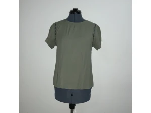 Blusa color verde olivo, marca WESTMOON. Con encaje en la parte de la sisa, cuello redondo, mangas abullonadas y pequeña abertura en la parte de la espalda.