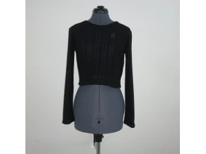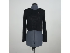 Blusa con transparencia color negra, marca H&M. Con cuello redondo y mangas largas.