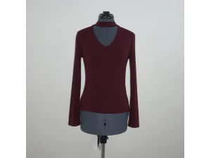 Blusa cuello alto con escote en V color vino, marca Bershka. Con mangas largas y abertura en la parte de la espalda. Tela: Stretch y ligera