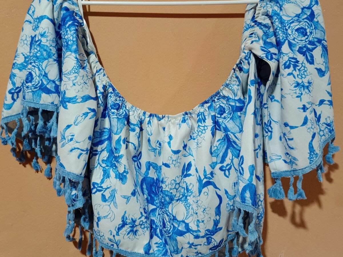 Set de la marca panameña Nativa. Es muy cómodo y fresco, perfecto para el calor. El pantalón se amarra por detrás y luego por adelante. La blusa es de espalda descubierta.