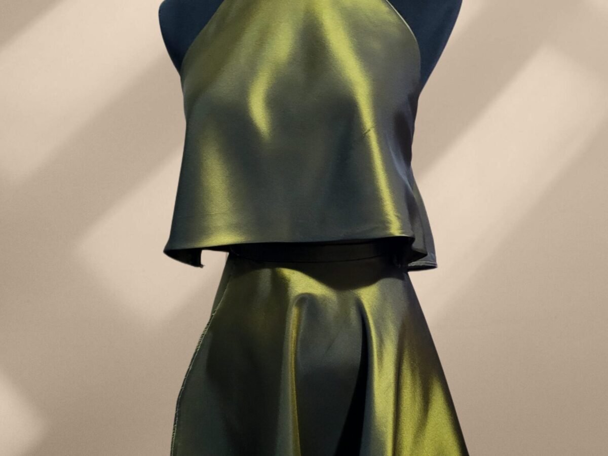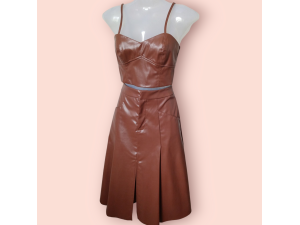 Conjunto falda La parte del vestido es todo de botones en el cierre Las mangas son acampanadas Se pueden combinar ambos con diferentes prendas La falda aparte y la parte de la camisa como vestido solo Ninguno transparenta, es fresco y ligero