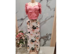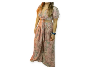 ~ CONJUNTO DE SHORT Y BLUSA MANGA LARGA VERDE Y CONJUNTOS DAMAS (2+ PIEZAS) ESTAMPADO FLORAL, ESCOTE V CON BOTONES Y AMARRE DE CINTAS ~ TALLA: S PRECIO: $20