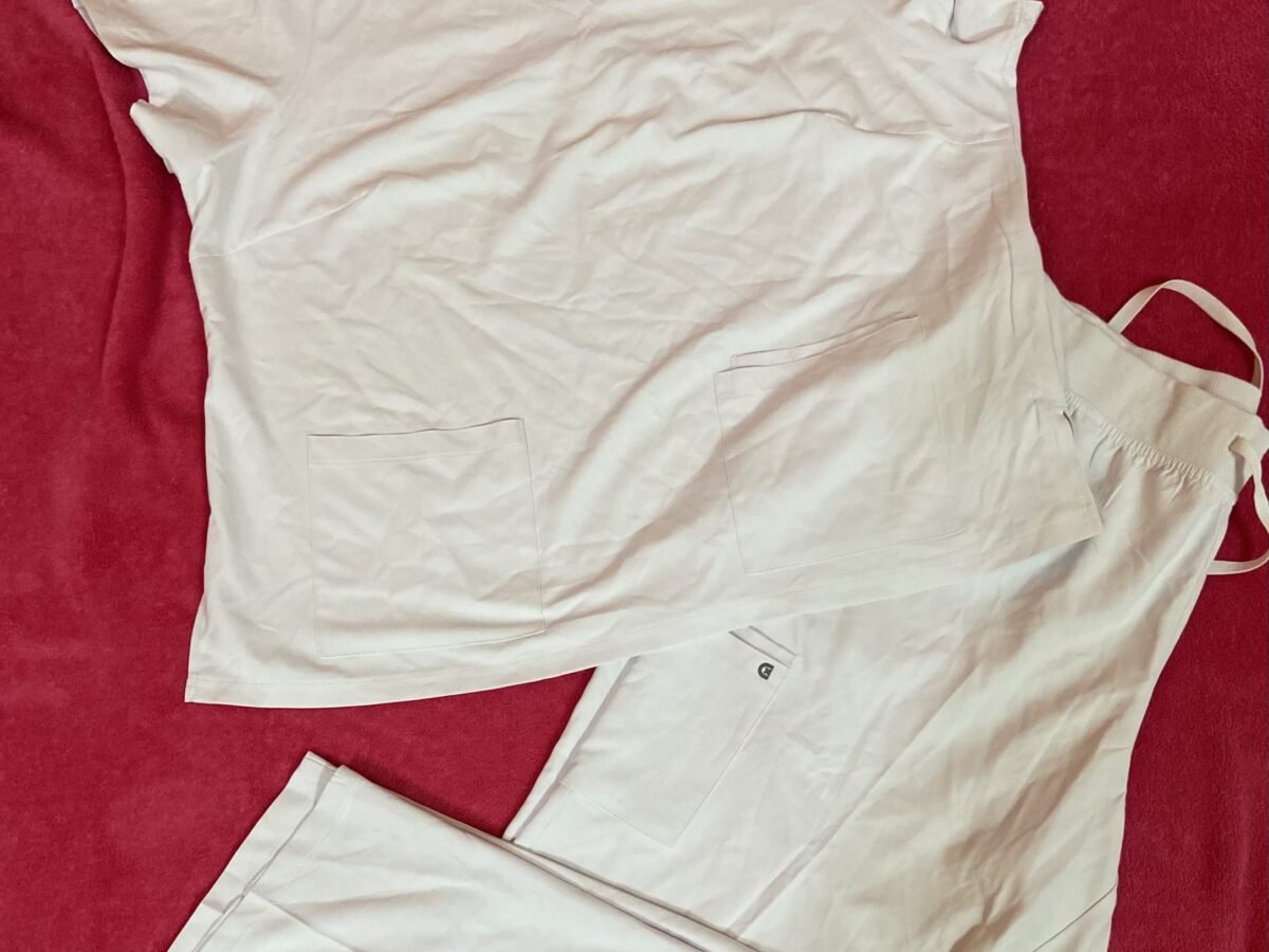 Scrub médico usado 4 veces. COMO NUEVO. El conjunto cuesta 30 dólares marca CUREOLOGY. No transparenta Camisa 2XL. Pantalón 3XL. 4 x 100 dólares. Individual 30c/u. (3 marca cureology, 1 marca sketcher)