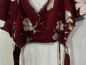 ~ CONJUNTO DE SHORT Y BLUSA S/MANGAS, BLANCO (2+ PIEZAS) ESTAMPADO FLORAL EN TONOS VERDE, AZUL, ROJO Y CREMA MANGAS Y BASTARUCHAS ~TALLA: M PRECIO: $15