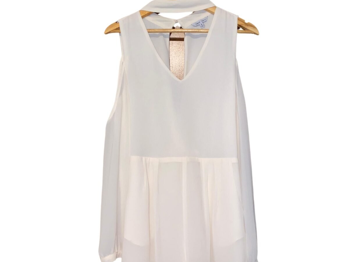 Jumsuit blanco con estampado de aves en negro Pantalón corto y con bolsillos Tiene doble tela y no transparenta Ajustado a la cintura y con detalle de lazo en la parte superior