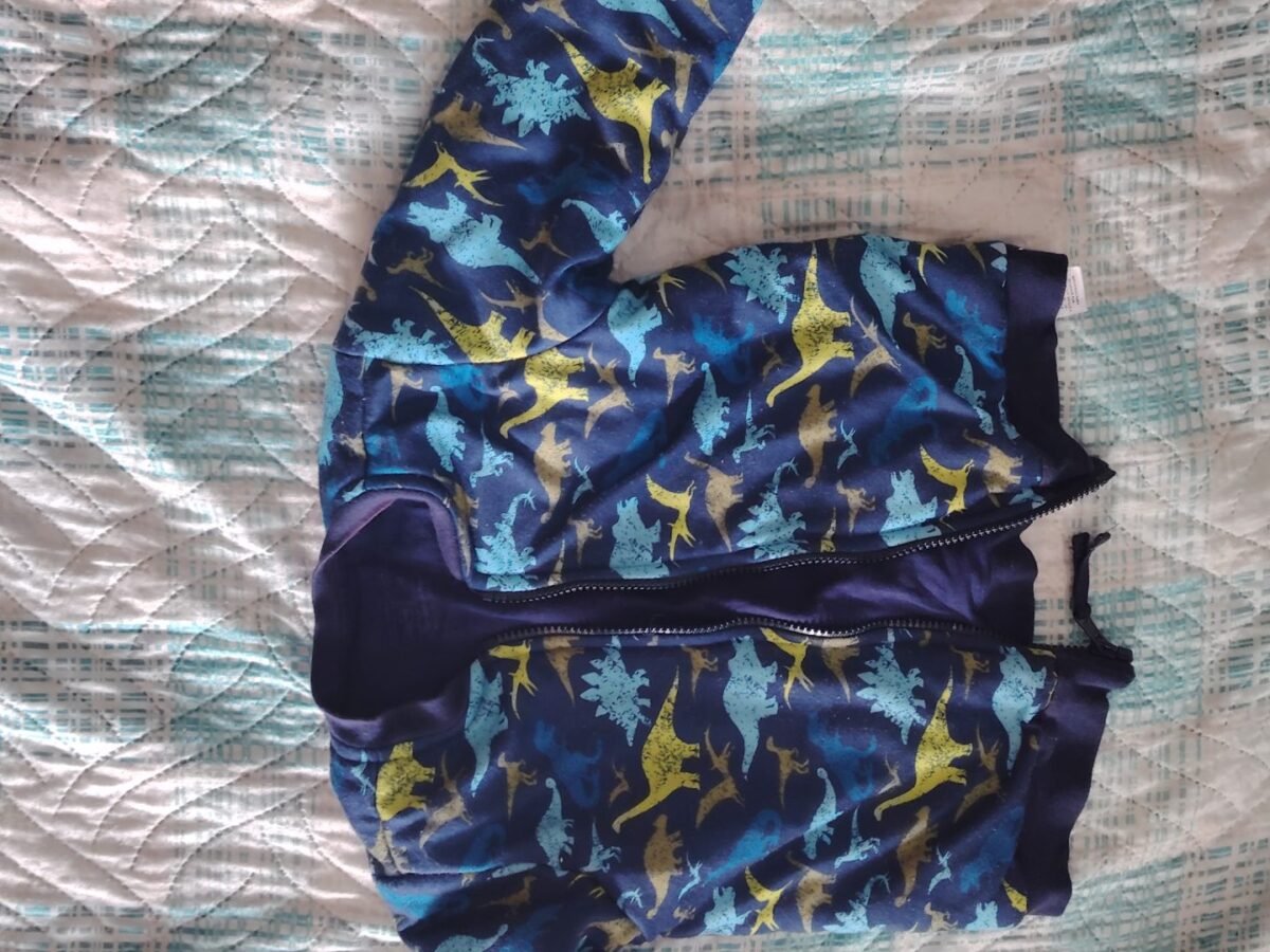 Jacket de niño de la marca little mic con estampado de dinosaurio y en el medio tiene zipper que tiene total funcionalidad la tela del jacket es bastante gruesa. Talla: 4T