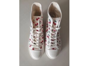 Zapatillas tipo "High T0p" en color blanco, con print de cerezas, marca American Eagle. Talla 8.5