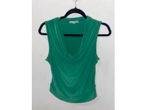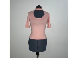 $7,00Blusa cuello alto con escote en U (rosa), marca Bershka. Con mangas francesas. Tela stretch con relieve.
