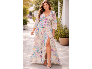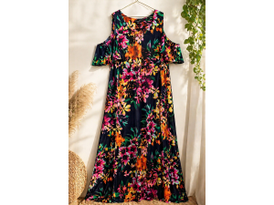 $45,00Vestido largo, elegante, estampado, con piedritas brillantes decorativas ideal para ecentos