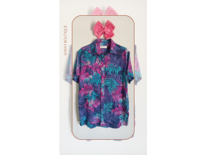 $14,99Elegante blusa fucsia vibrante con delicados detalles de encaje en cuello y mangas, perfecta para darle un toque sofisticado y femenino a cualquier outfit.