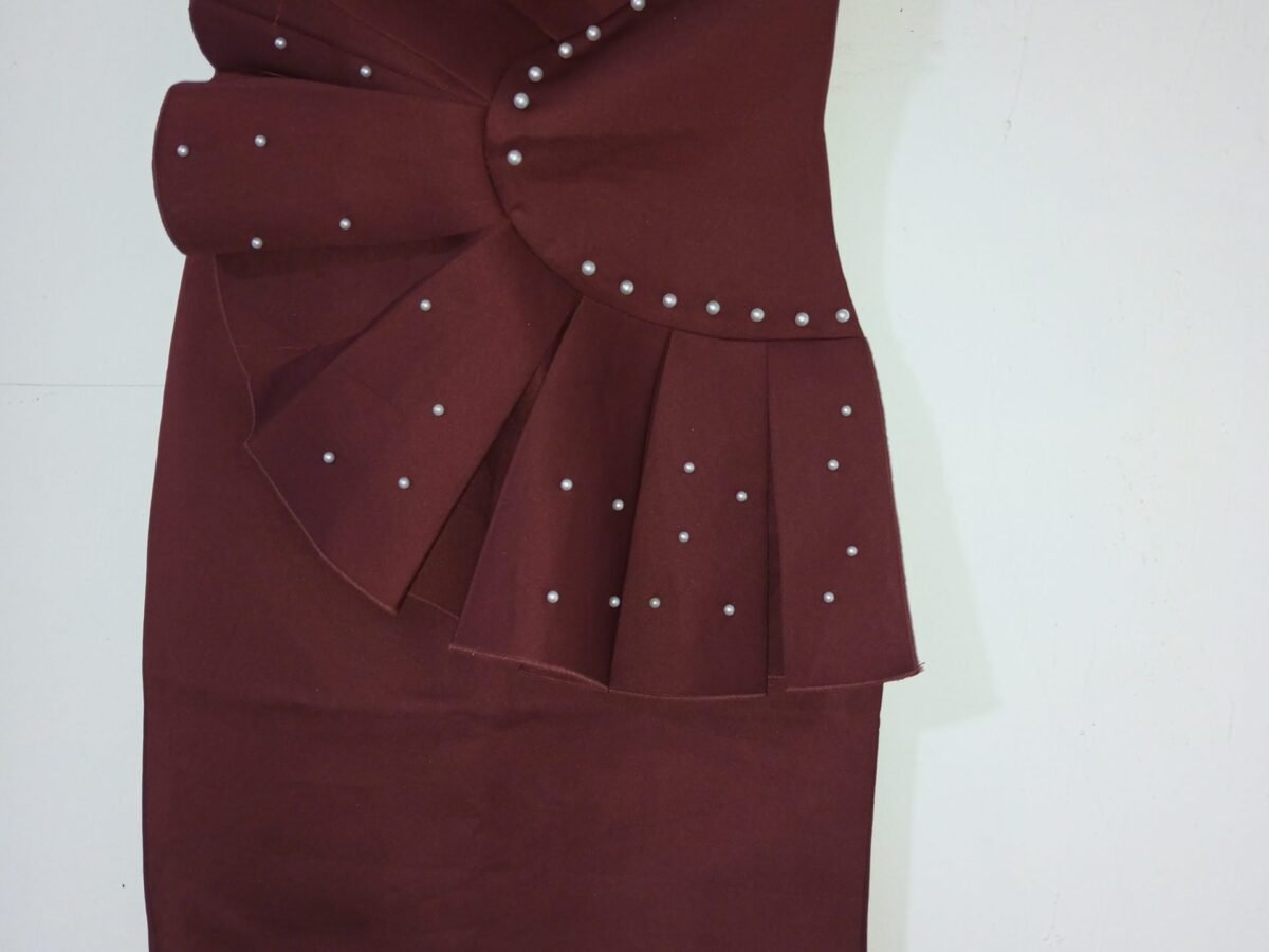 Vestido corto one shoulder con aplicaciones de flores de la misma tela en el hombro. Tiene capas de volados a lo largo del vestido. Perfecto para eventos y sesiones de fotos. Tela satinada por fuera y tela de forro spandex para más comodidad.