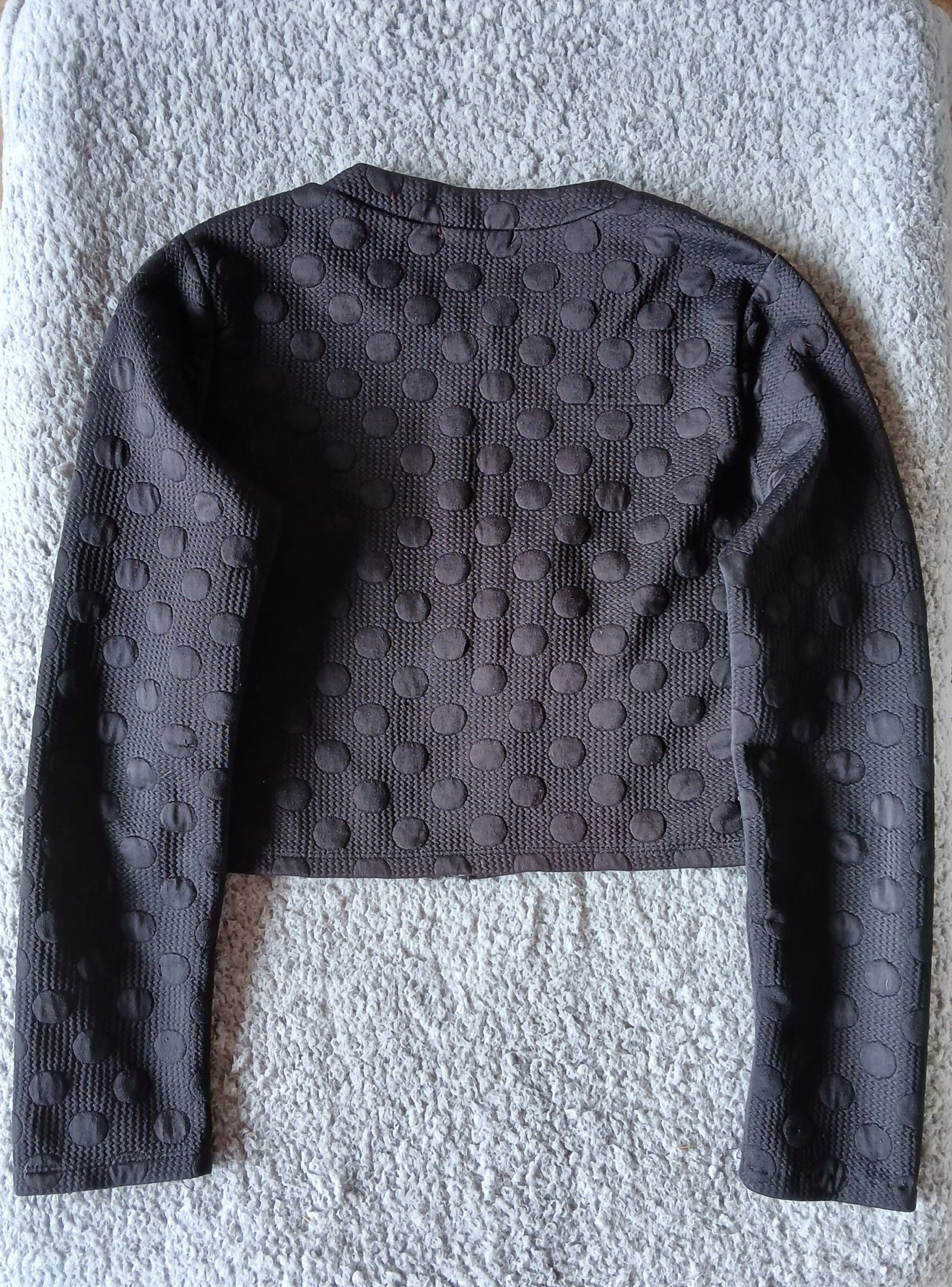 Abrigo color negro con estampado de circulos, marca zawary, con siper.