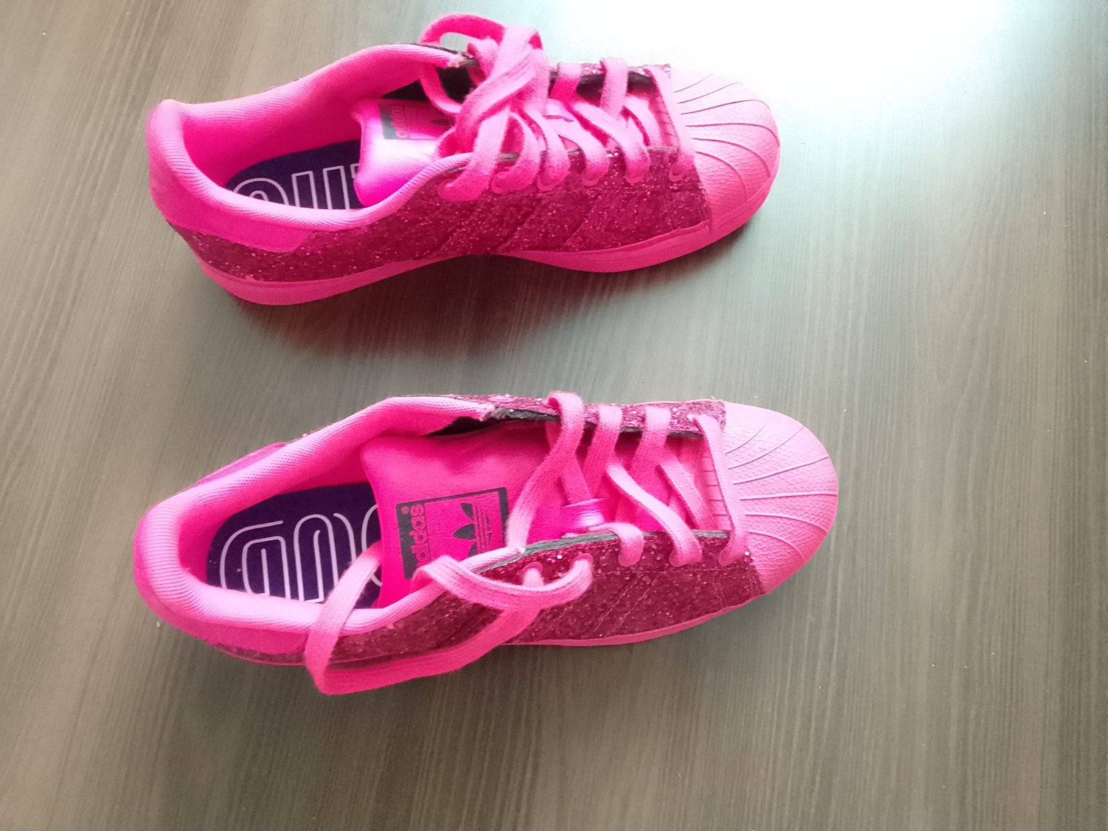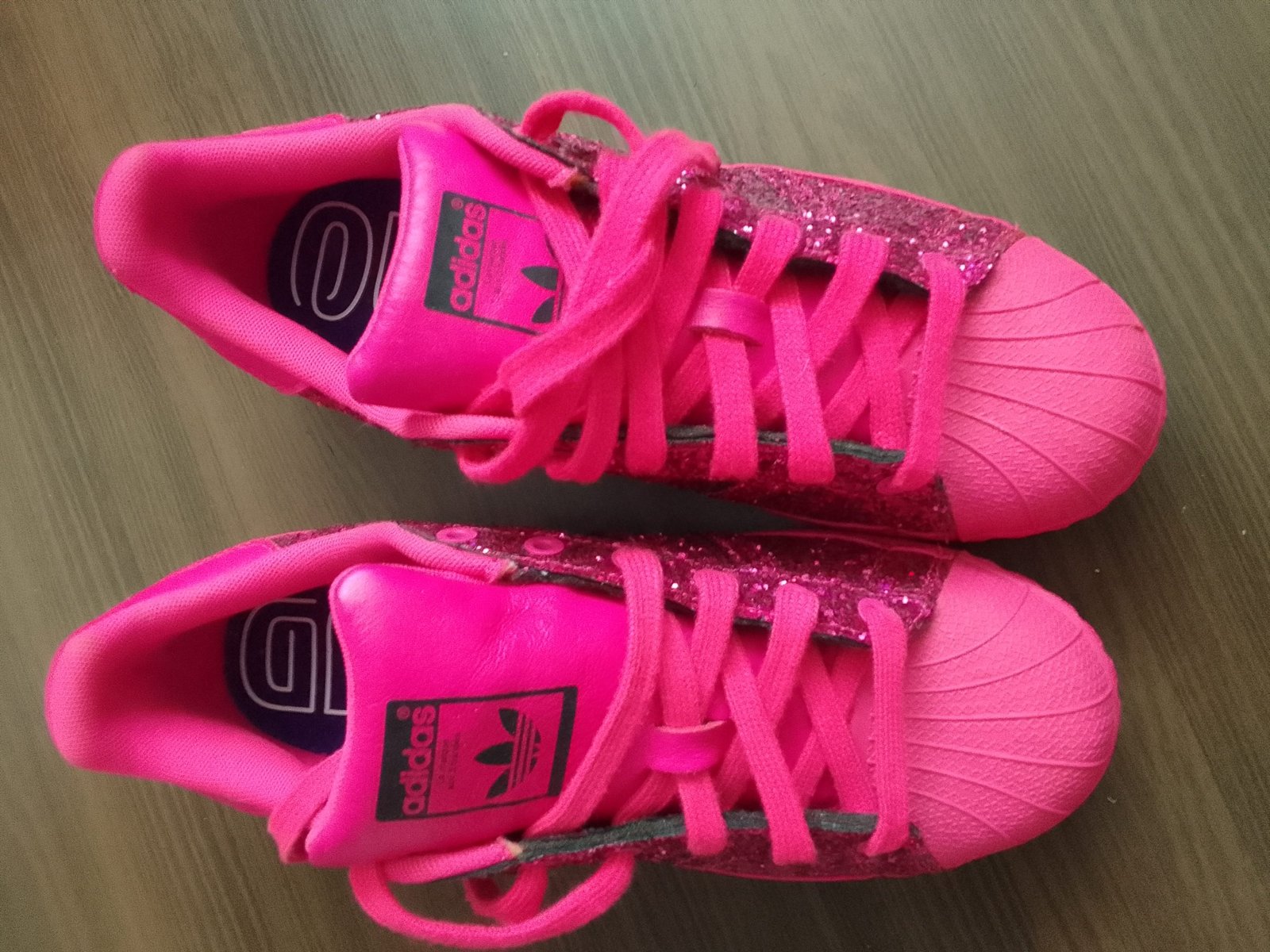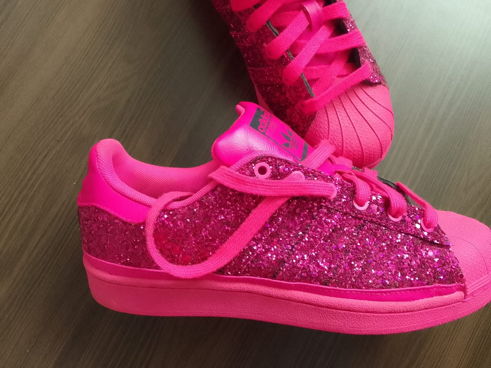 Las zapatillas Adidas Superstar originales en versión Glitter fucsia son un must para combinar comodidad y estilo. Estás zapatillas presentan un brillante acabado en glitter fucsia, que aporta un toque único y llamativo a tu look. Ideales tanto para un look casual como para añadir un toque de glamour a tus outfits diarios. Edición especial