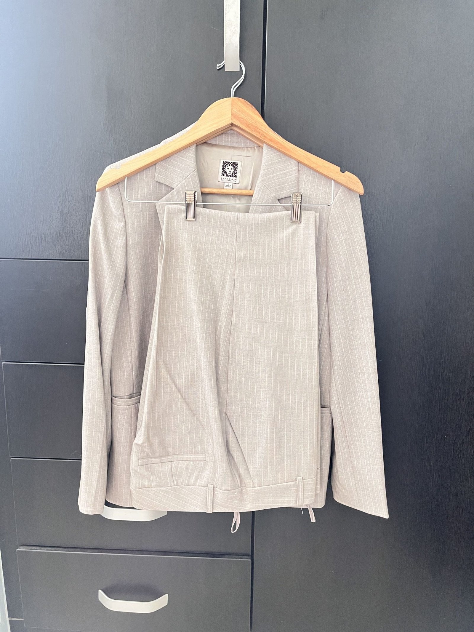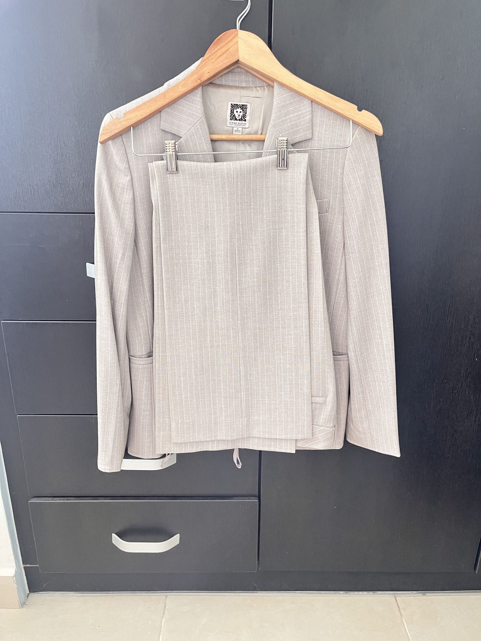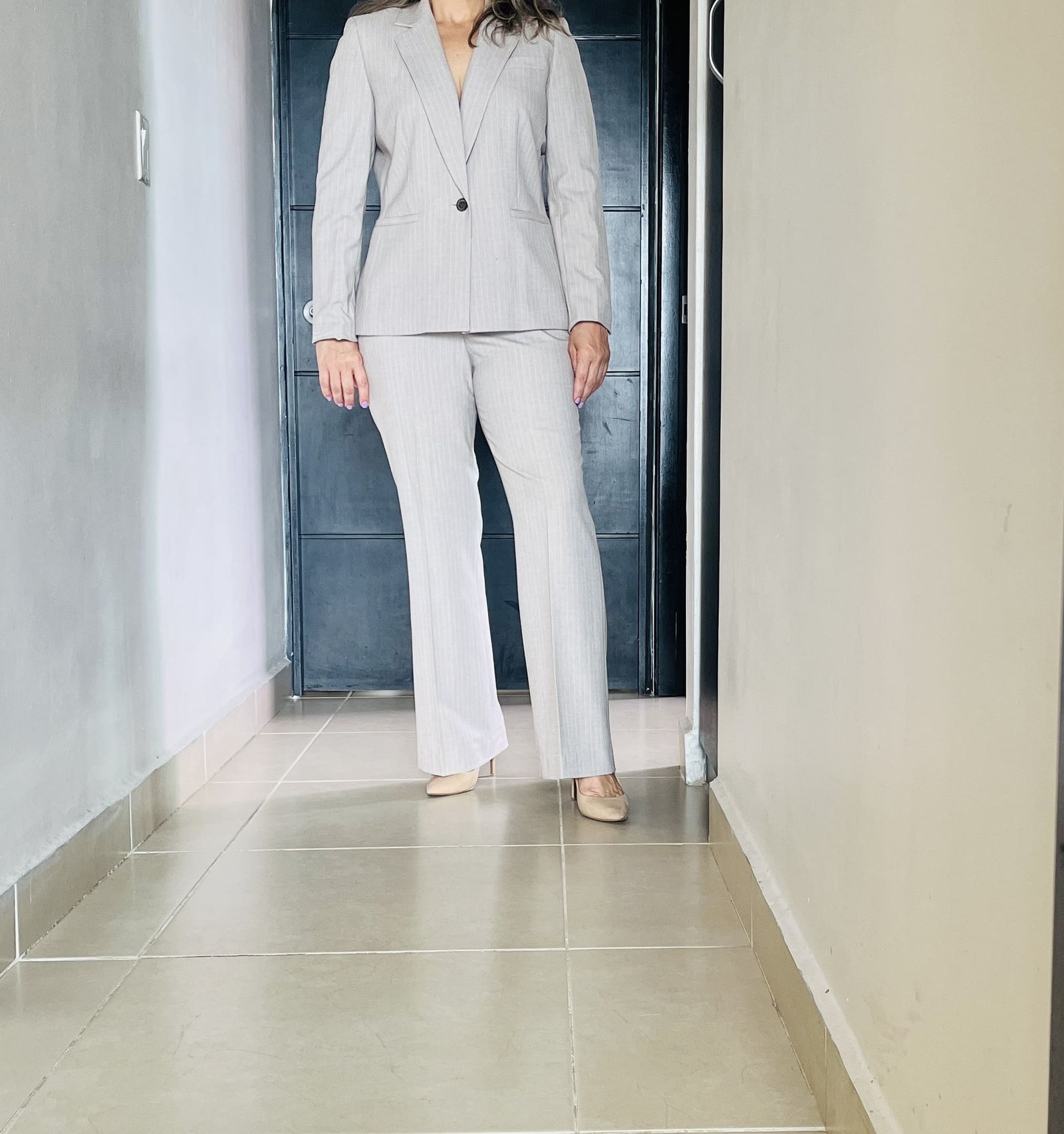 Vestido de oficina color crema con lineas delgadas color blanco, forro interno, poco uso Talla 10