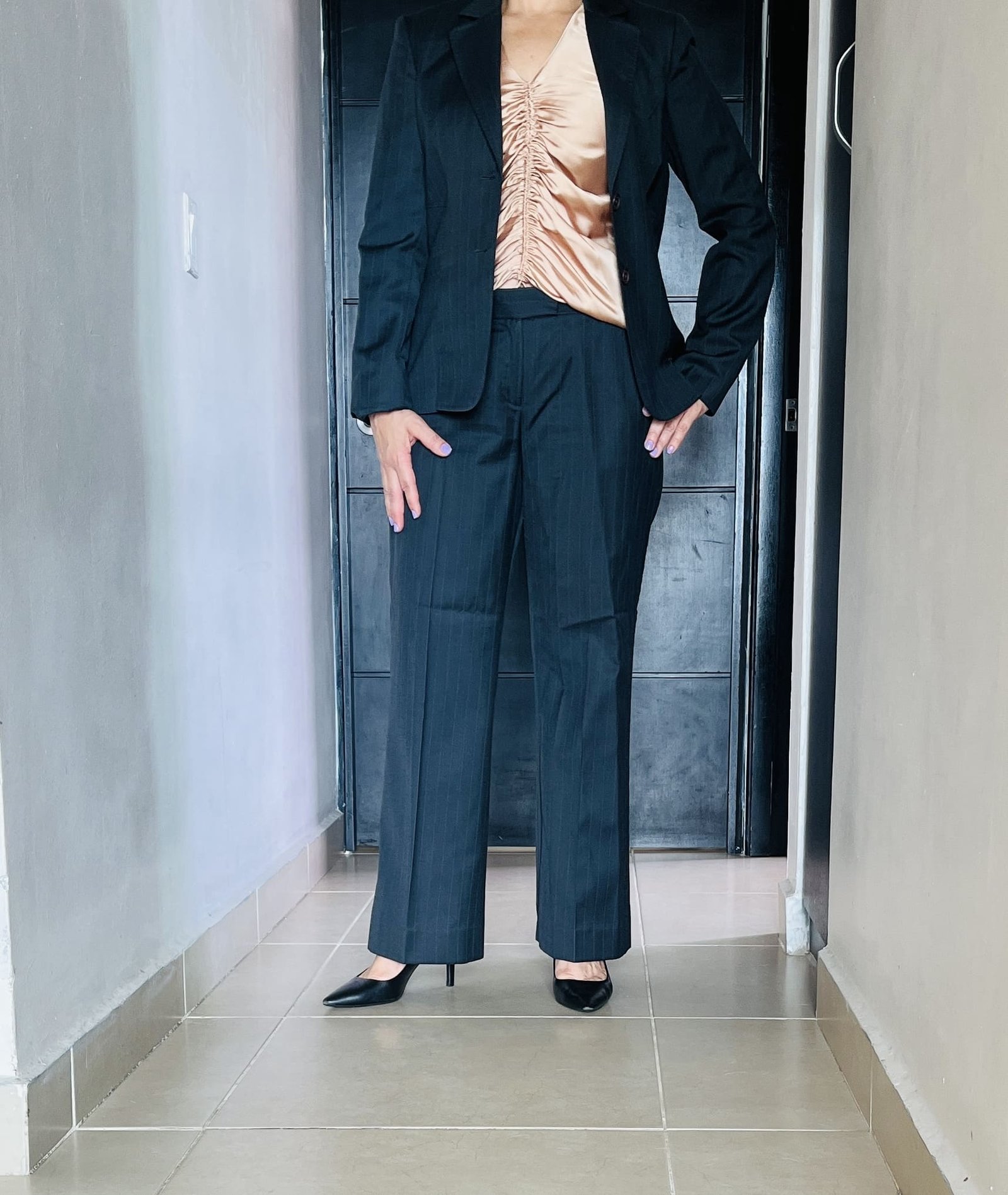 Vestido Anne Klein de 3 piezas, color negro con pequeñas lineas doradas, traje en perfectas condiciones Talla 10