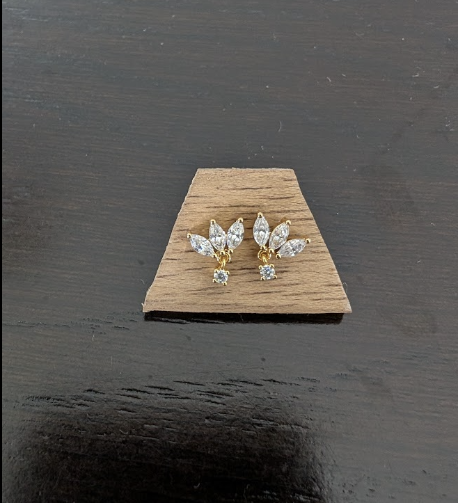Nuevo, nunca usado. Bronce con baño de oro 14k, Cubic Zirconia.