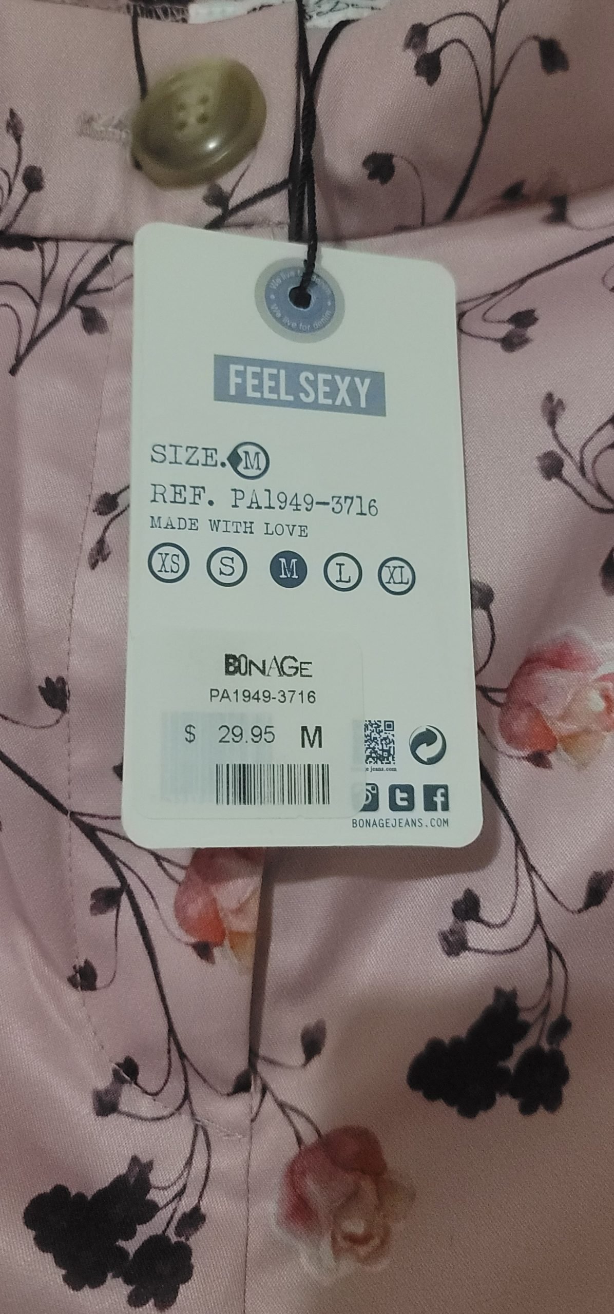 Bello pantalon Bonage nuevo con etiqueta, estampado.