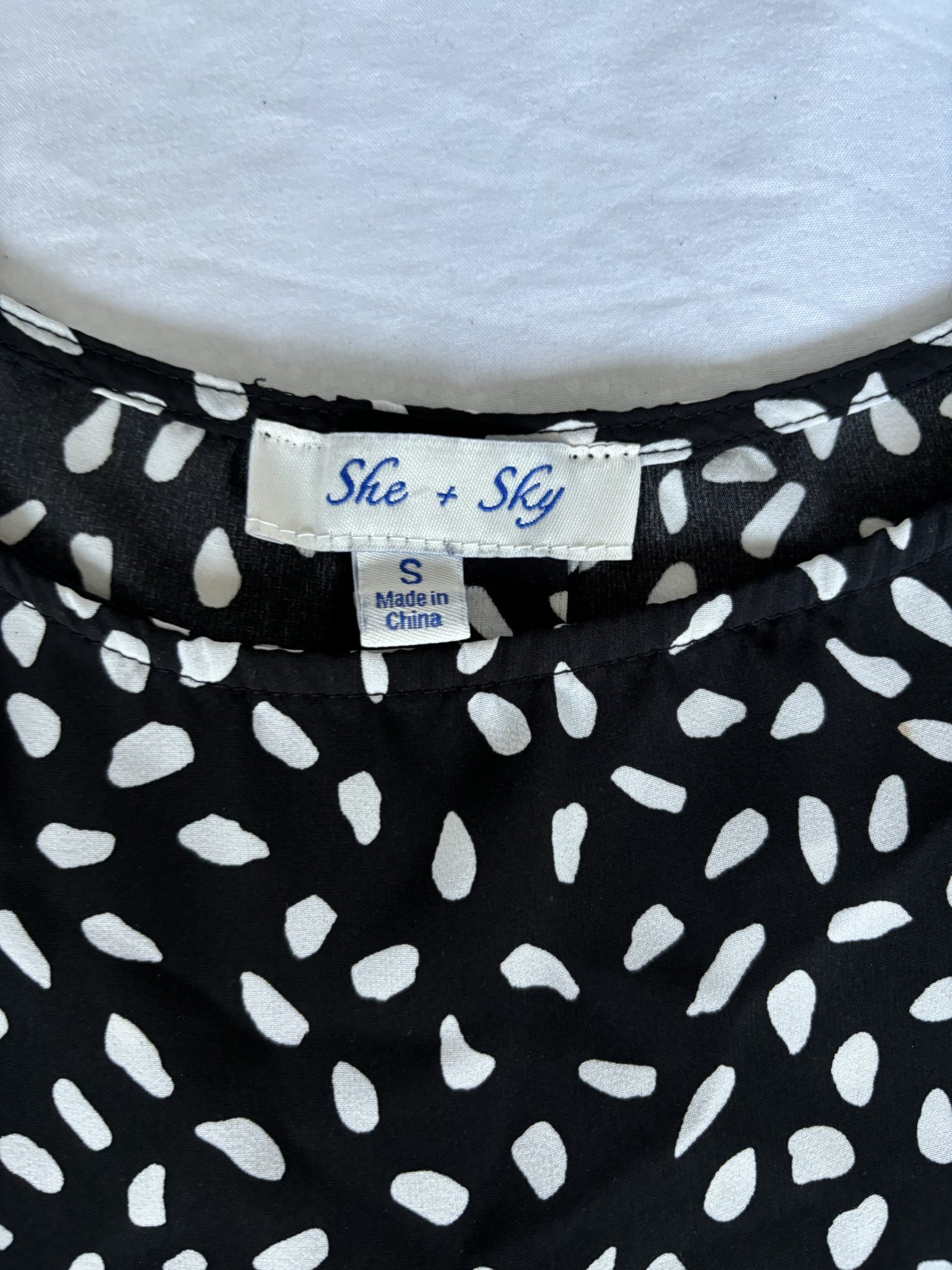 Blusa negra con puntos negros, tela fina y Fresca.