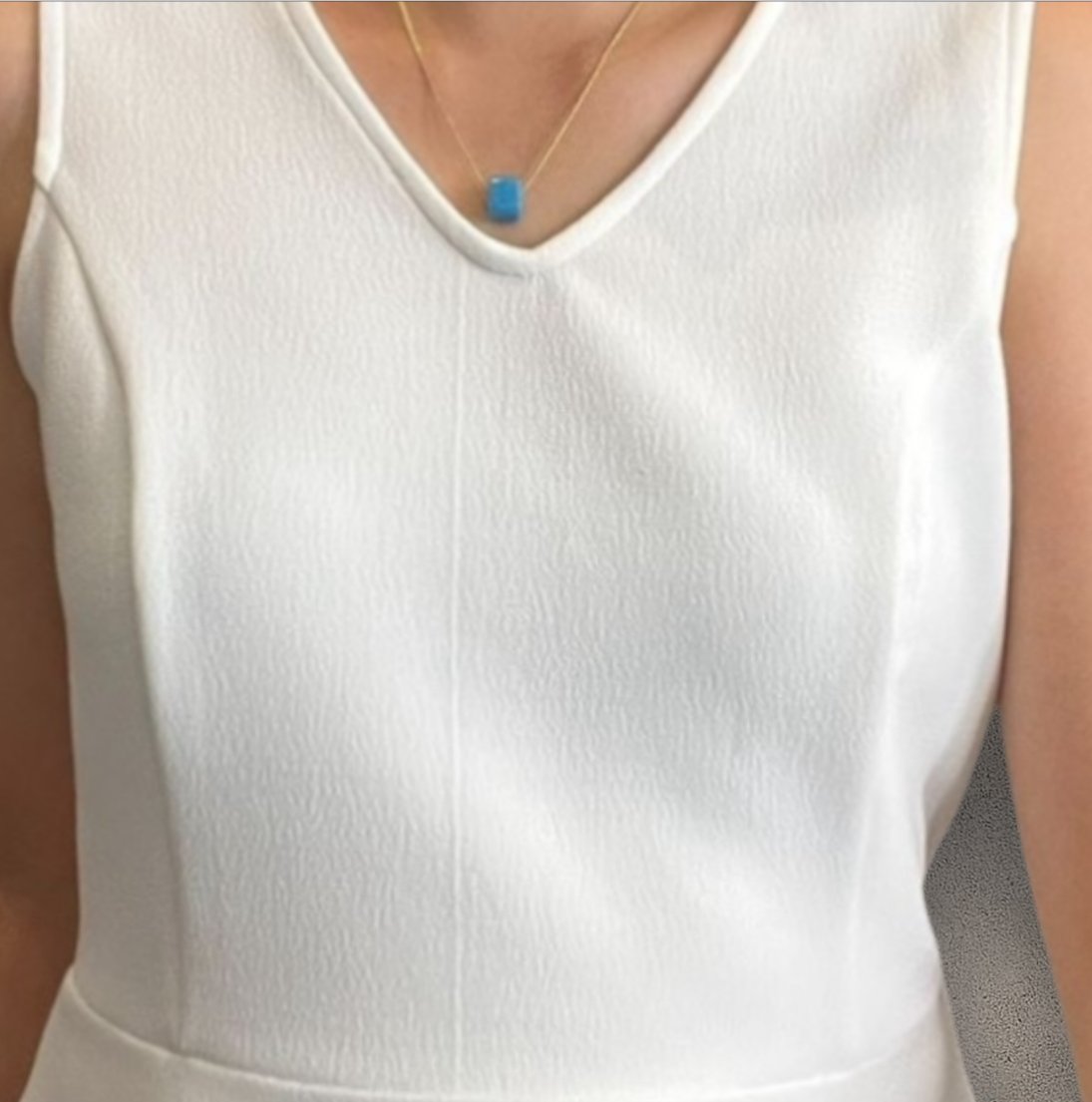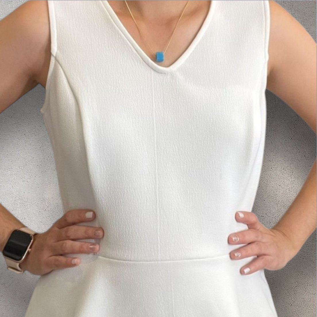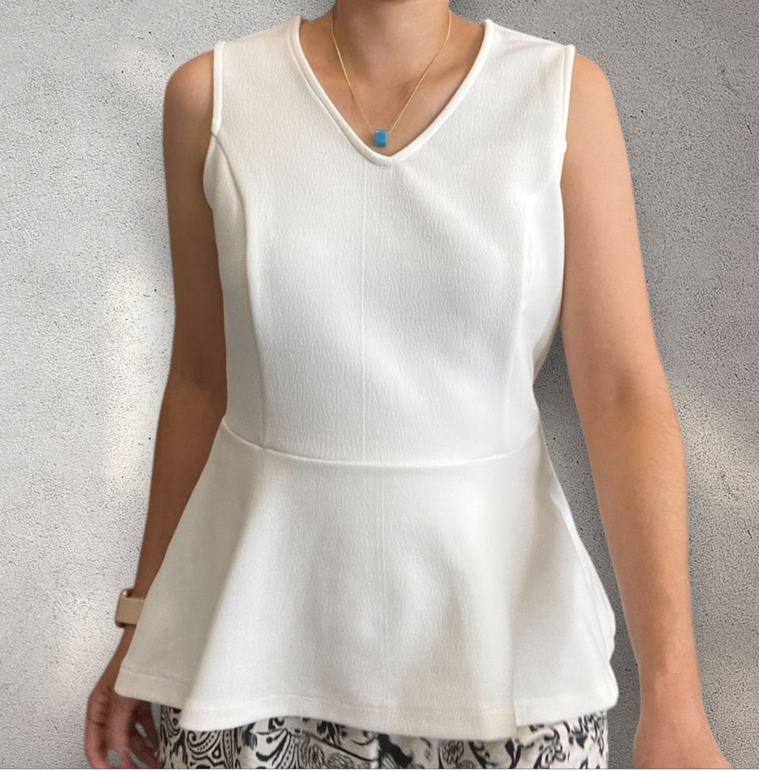 Blusa con cuello en v estilo peplum sin mangas talla small. Talla de la modelo M