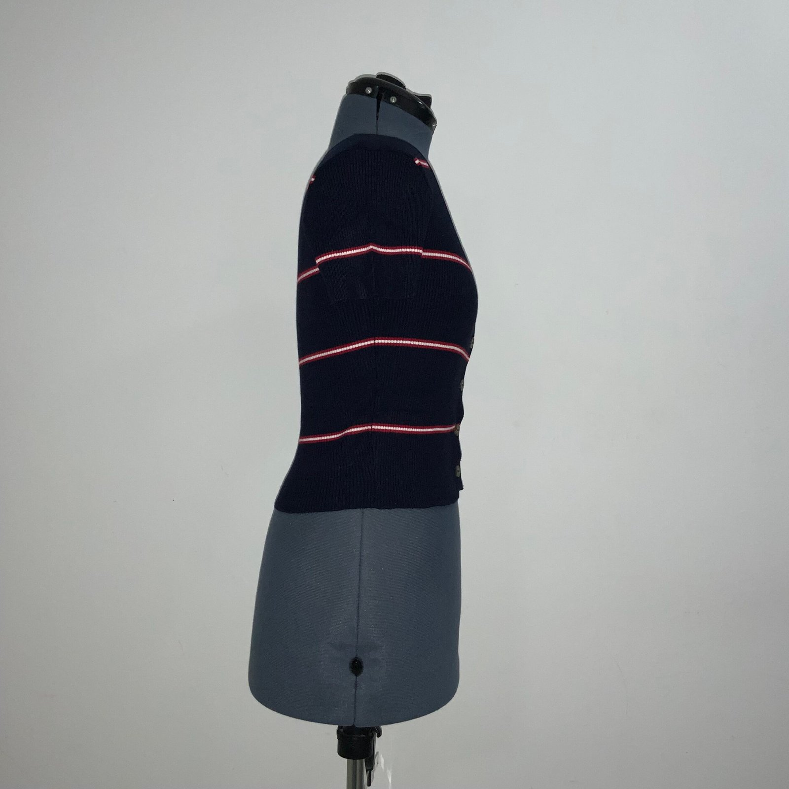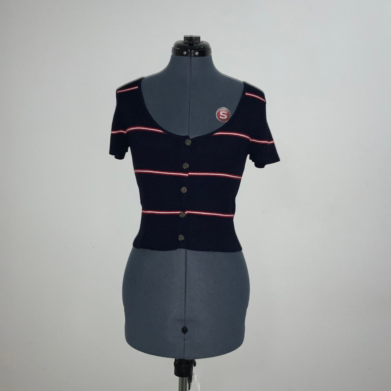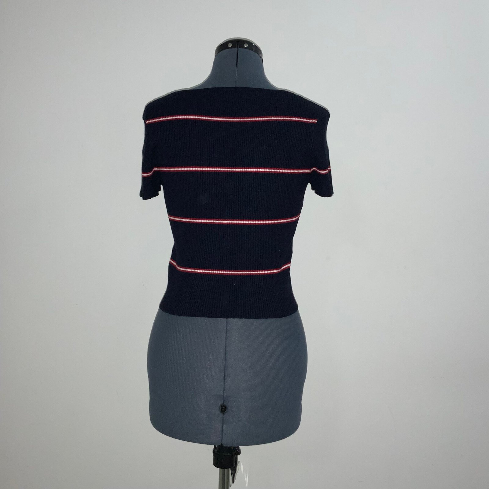 Blusa con franjas horizontales (rojas y blancas), marca Forever 21. Con mangas cortas y escote en U. Tela stretch con relieve.
