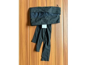 Blusa cuello alto con escote en U (negra), marca Bershka. Con mangas francesas. Tela stretch con relieve.