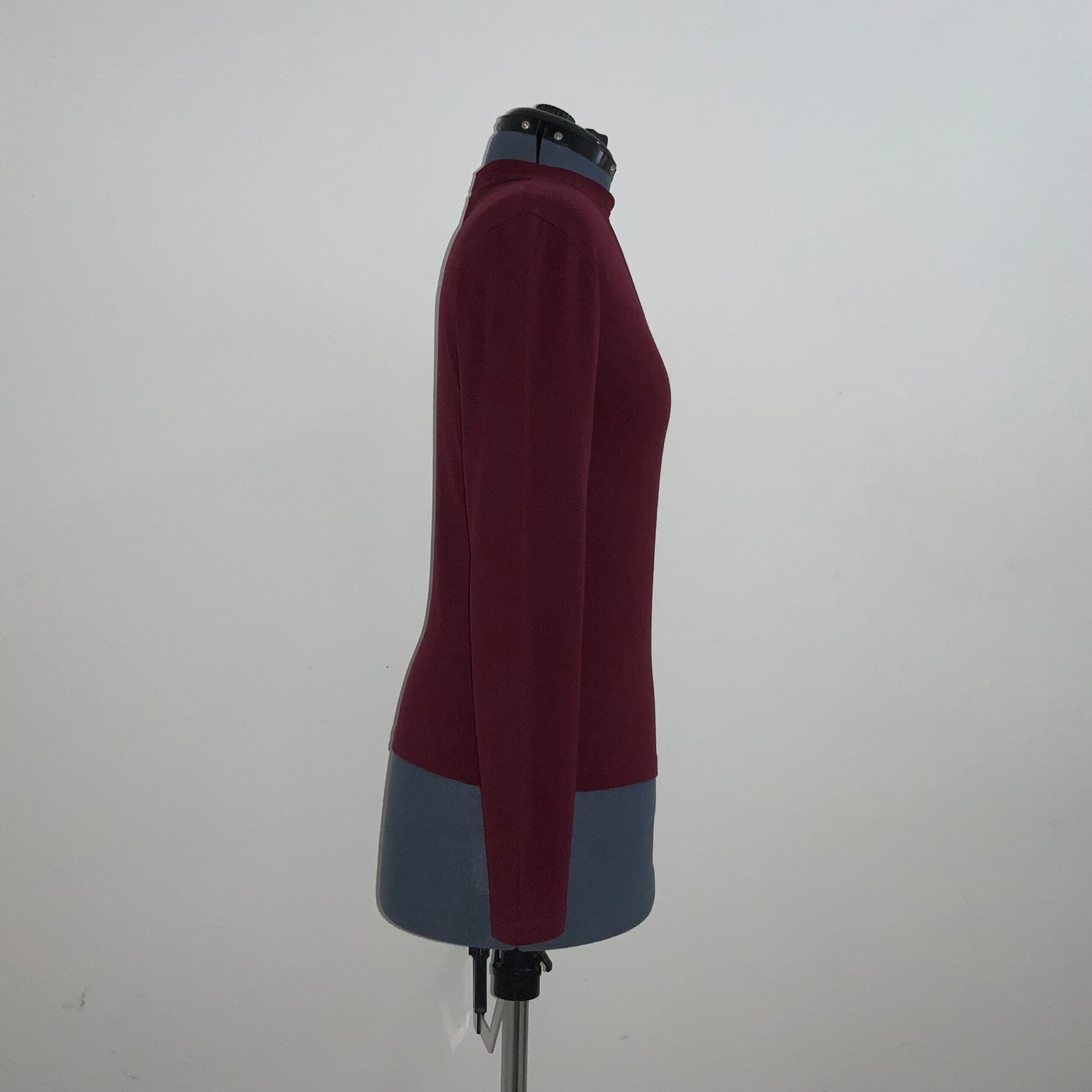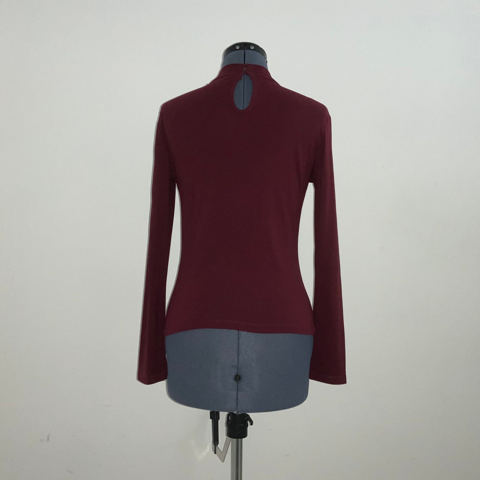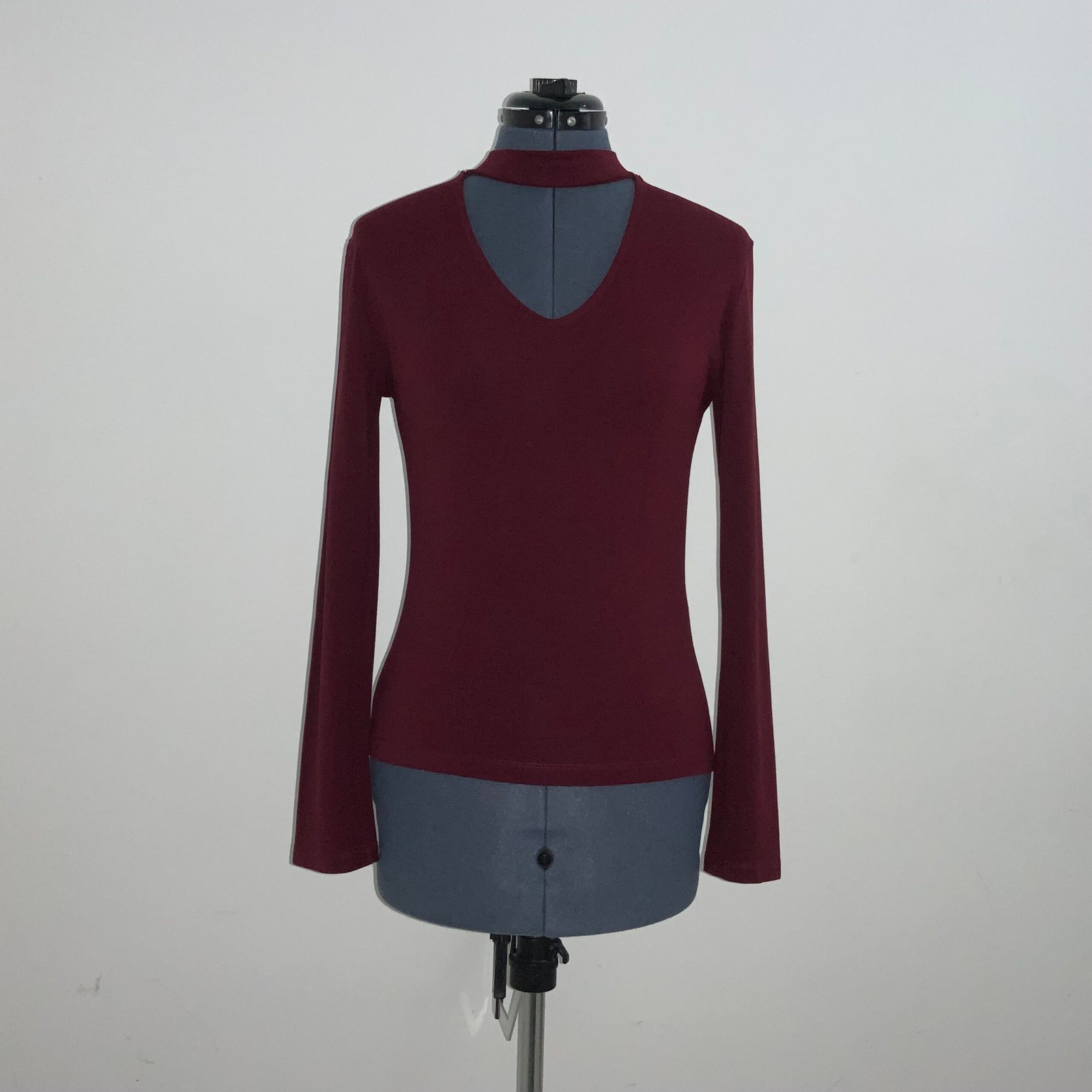 Blusa cuello alto con escote en V color vino, marca Bershka. Con mangas largas y abertura en la parte de la espalda. Tela: Stretch y ligera