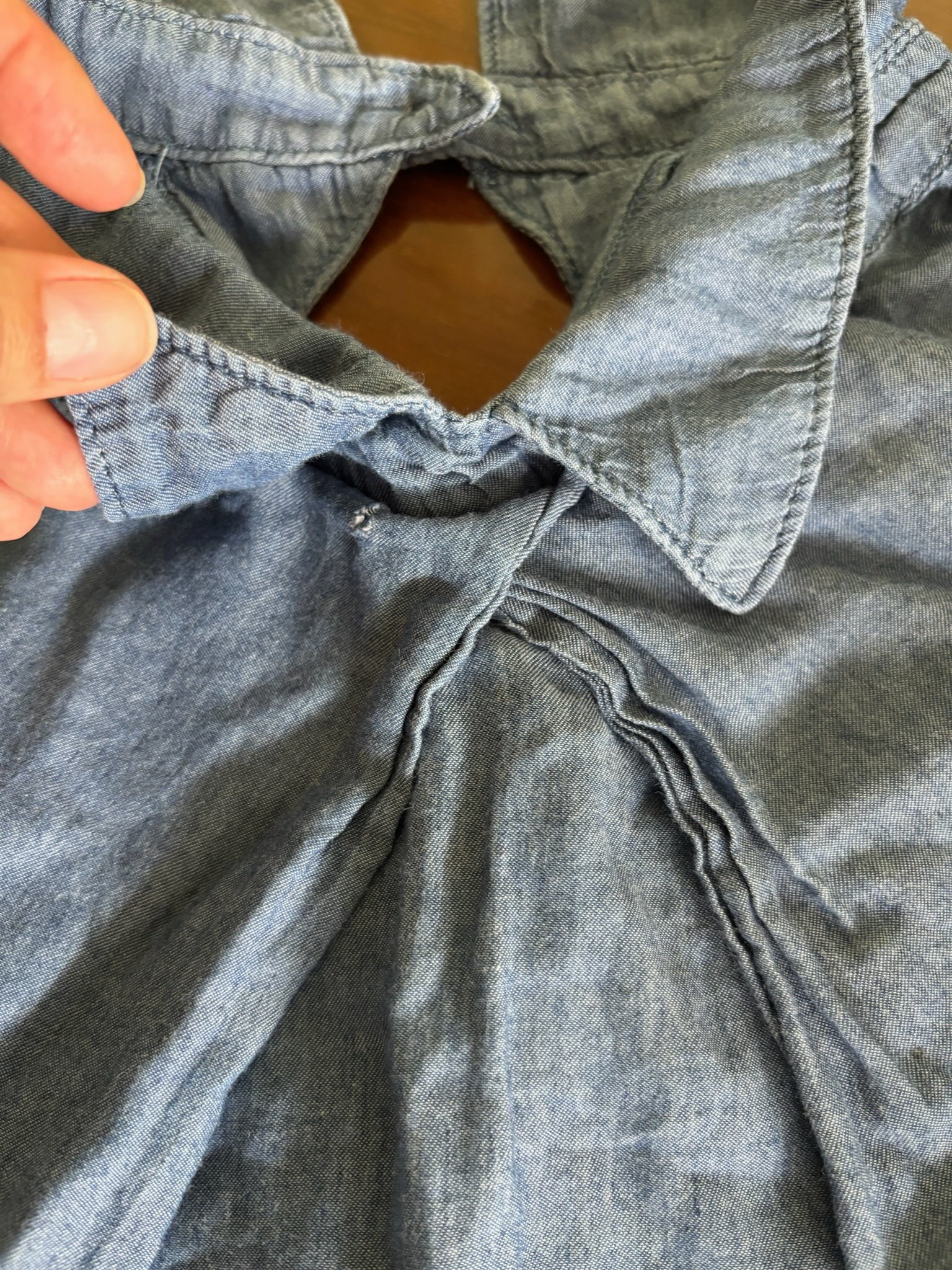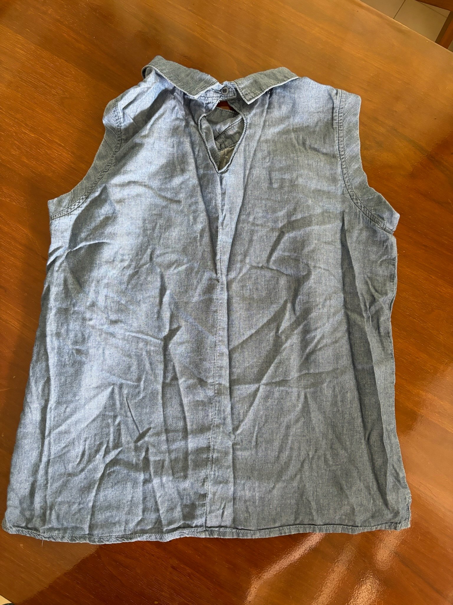 Blusa de embarazo, es talla s, es muy fresca, la tela es como si fuera de jeans pero es delgada y suave. tiene un pequeño detalle que se muestra en la foto pero no se ve por el cuello.
