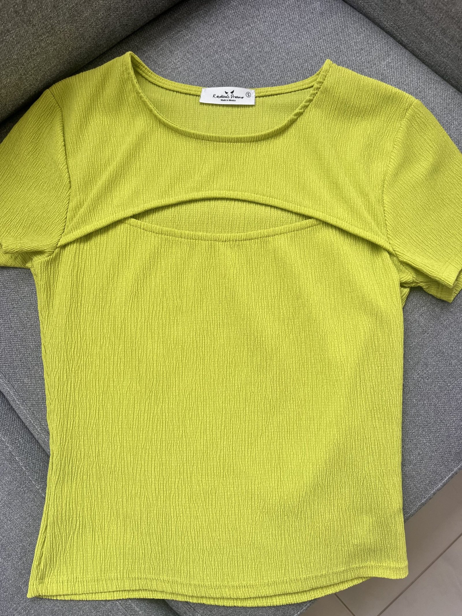 Blusa escotada verde limón talla S cantidad