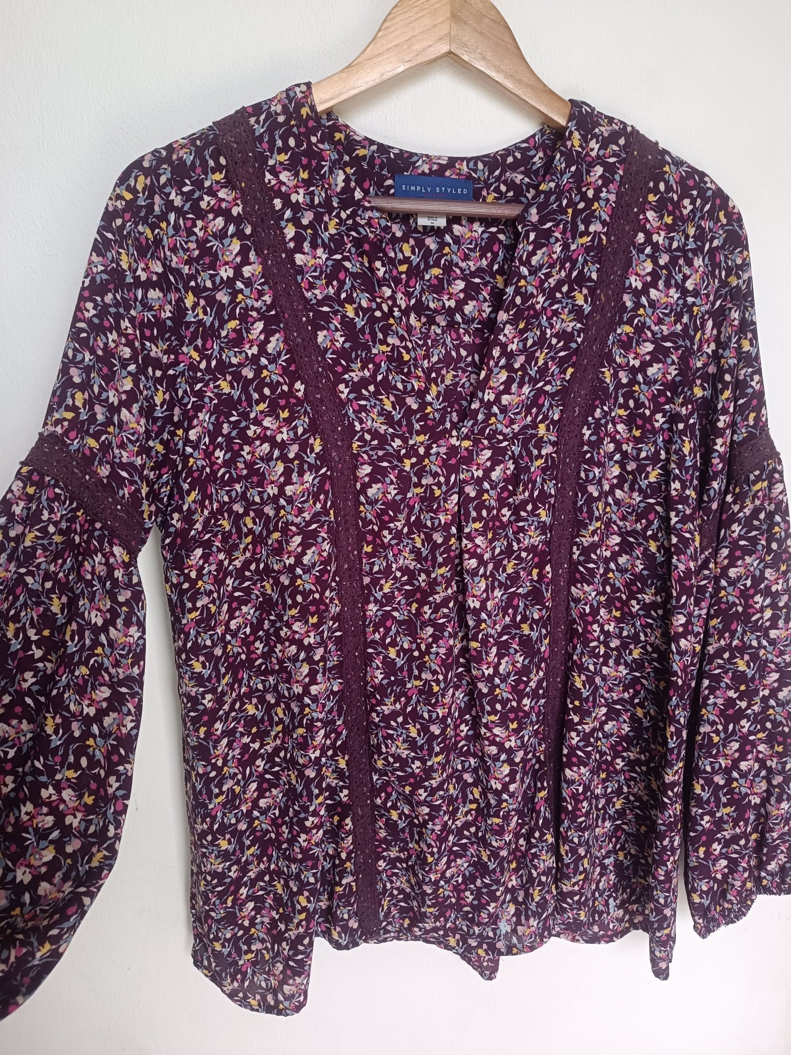 Estilo Bohemio, tela super fresca, mangas acampanadas. Usada vez.