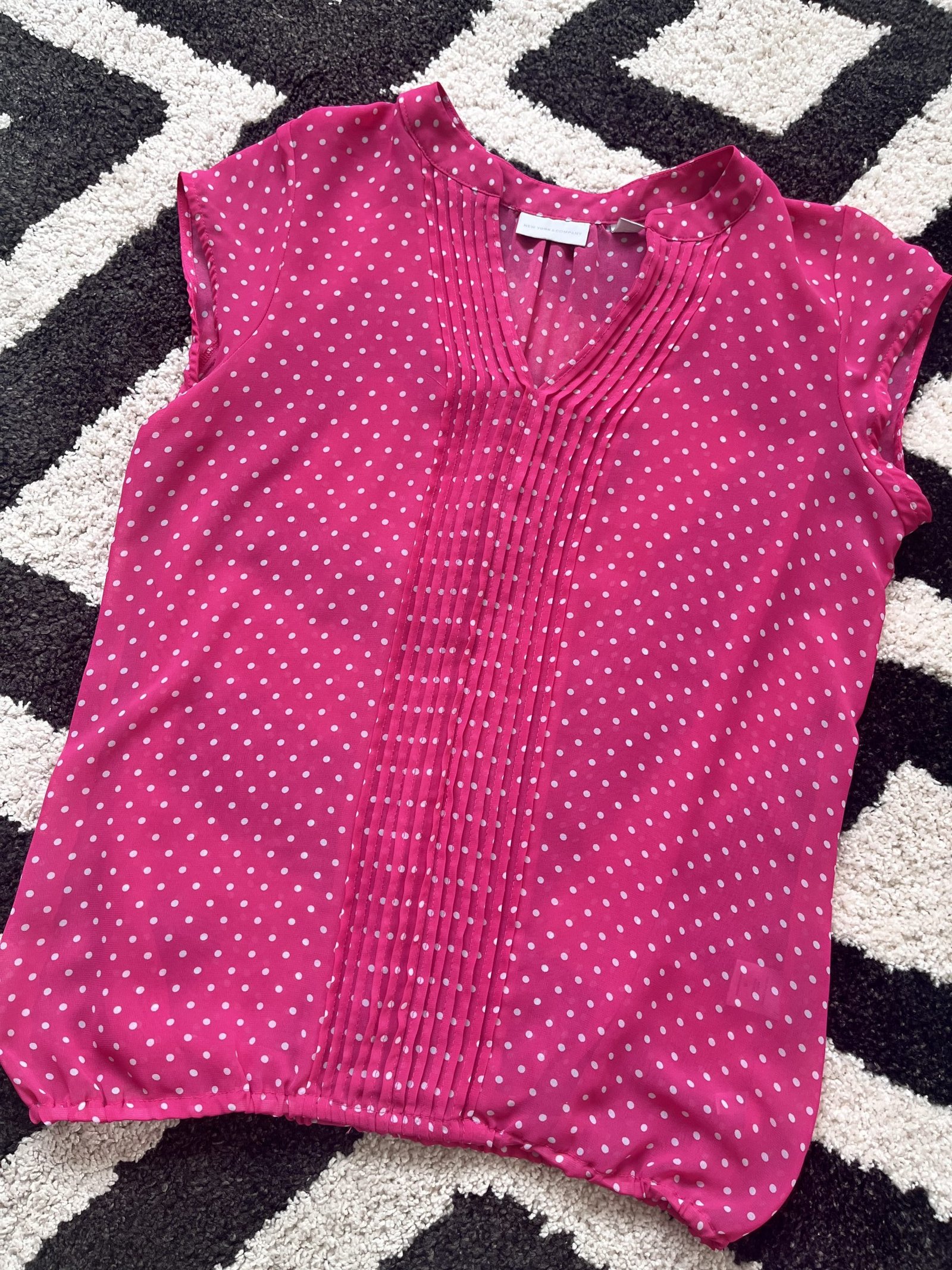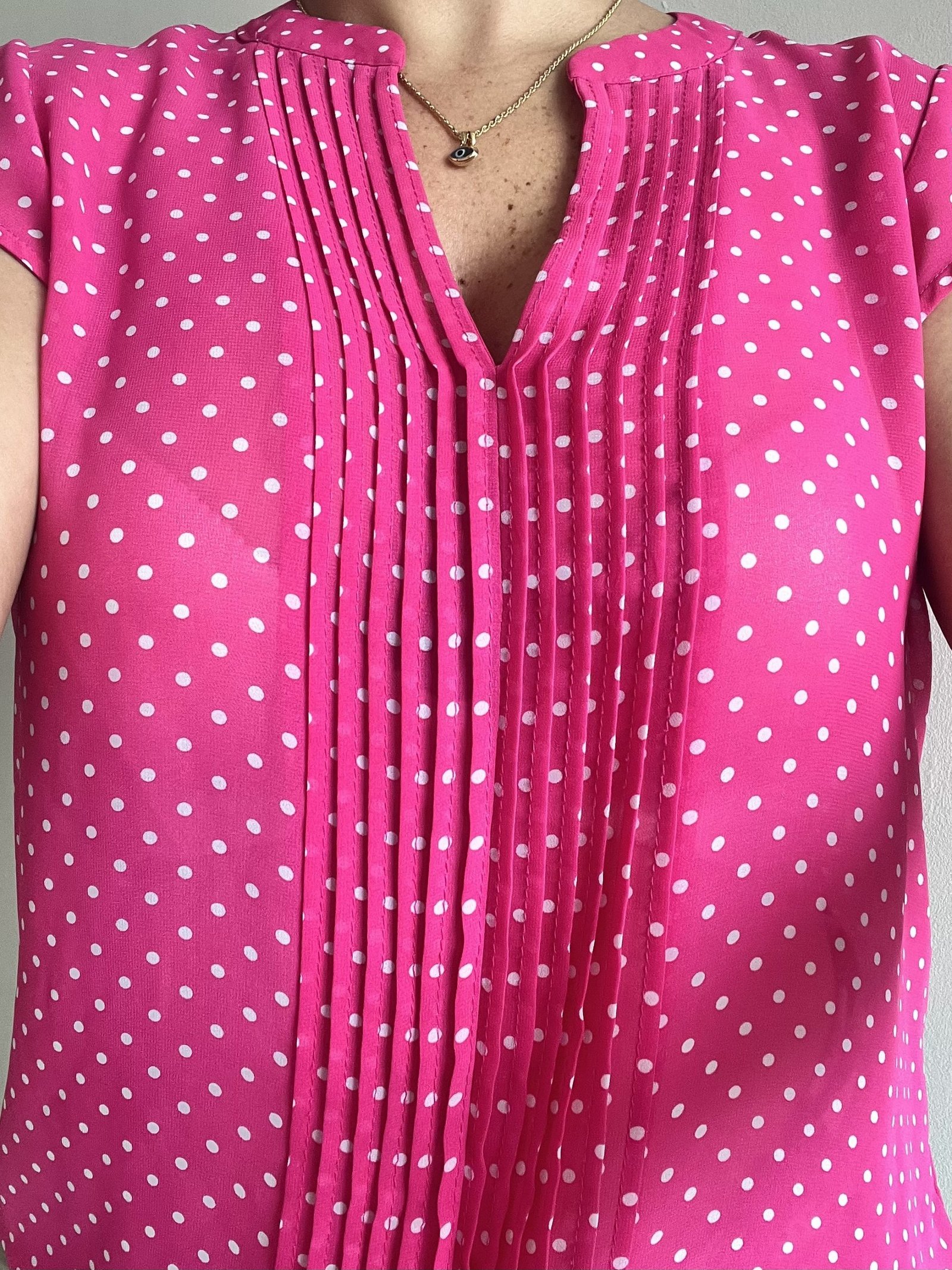 Blusa fucsia con bolitas blancas , Talla S cantidad