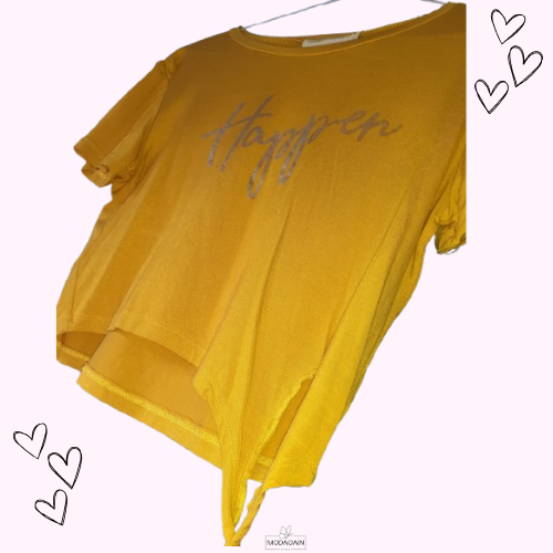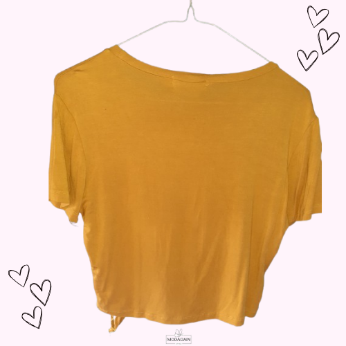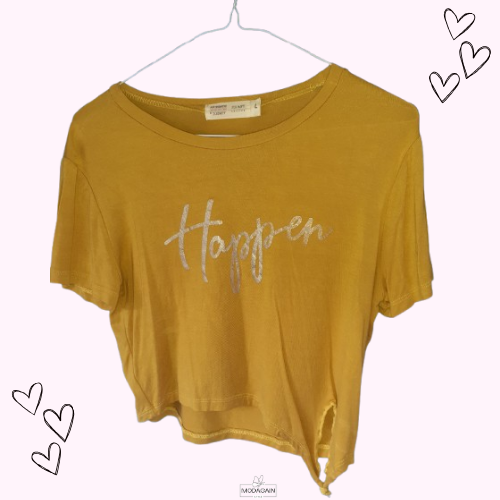 Blusa Mostaza Talla L (ajuste tipo M) Marca: Zoompy Edition Material: Tela suave y ligera Características: Diseño frontal con la palabra Hoppen Apertura en el costado inferior izquierdo Cómoda y fresca, ideal para uso diario Esta blusa ofrece un estilo relajado, con un ajuste cómodo que resalta la figura.