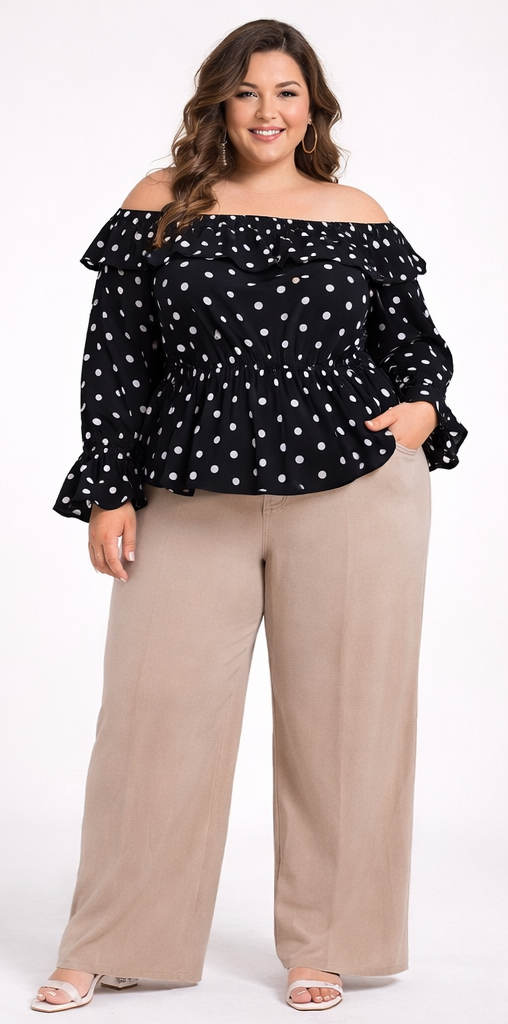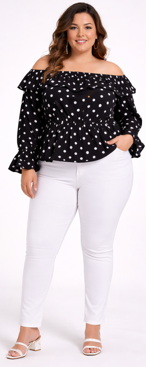 BLUSA OFF SHOULDER DE LUNARES PLUS SIZE