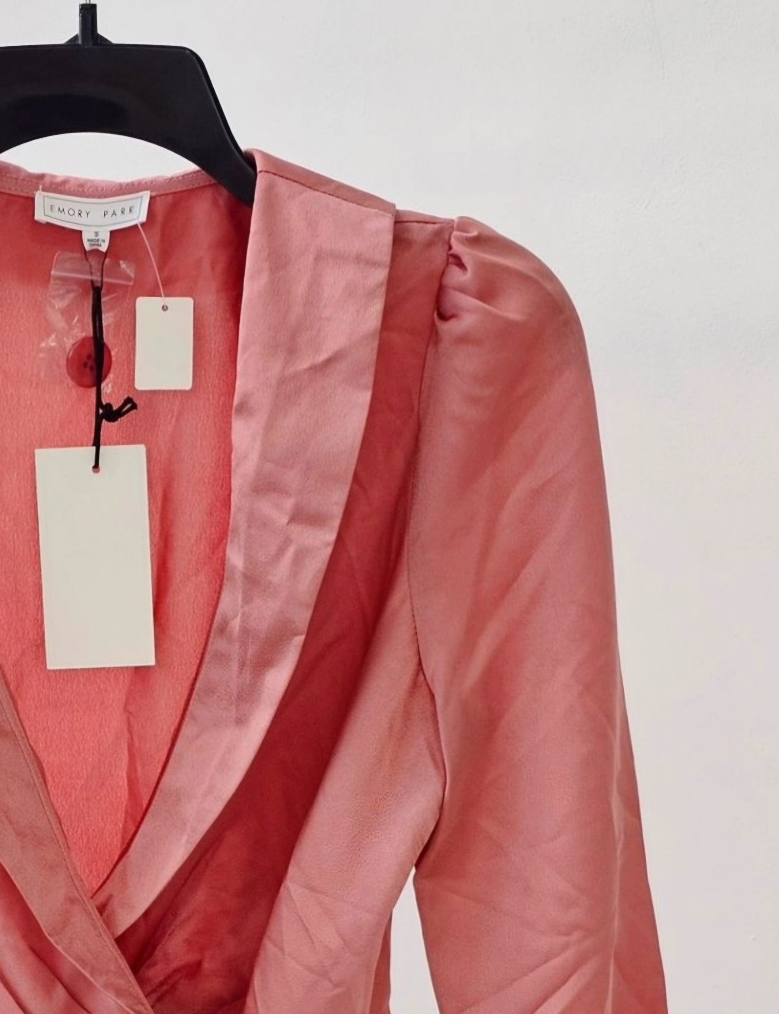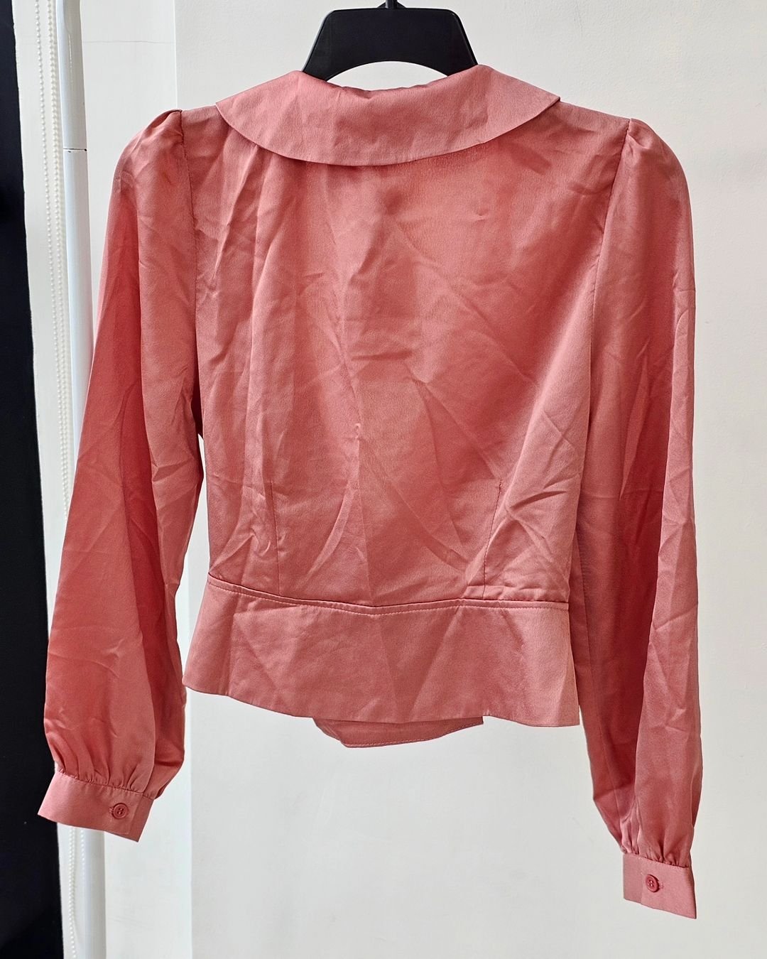 ~ BLUSA PALO DE ROSA TELA SATINADA, MANGA LARGA CON BLUSAS Y TOPS 1 BOTON, ESCOTE V PROFUNDO ~