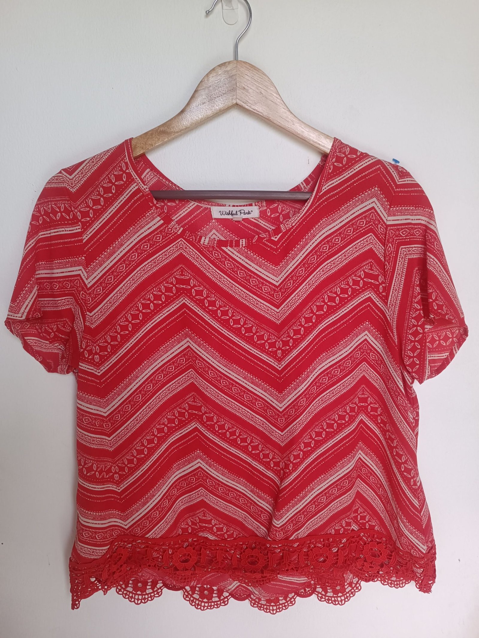 Blusa Roja - Anaranjada detalles de tejidos cantidad