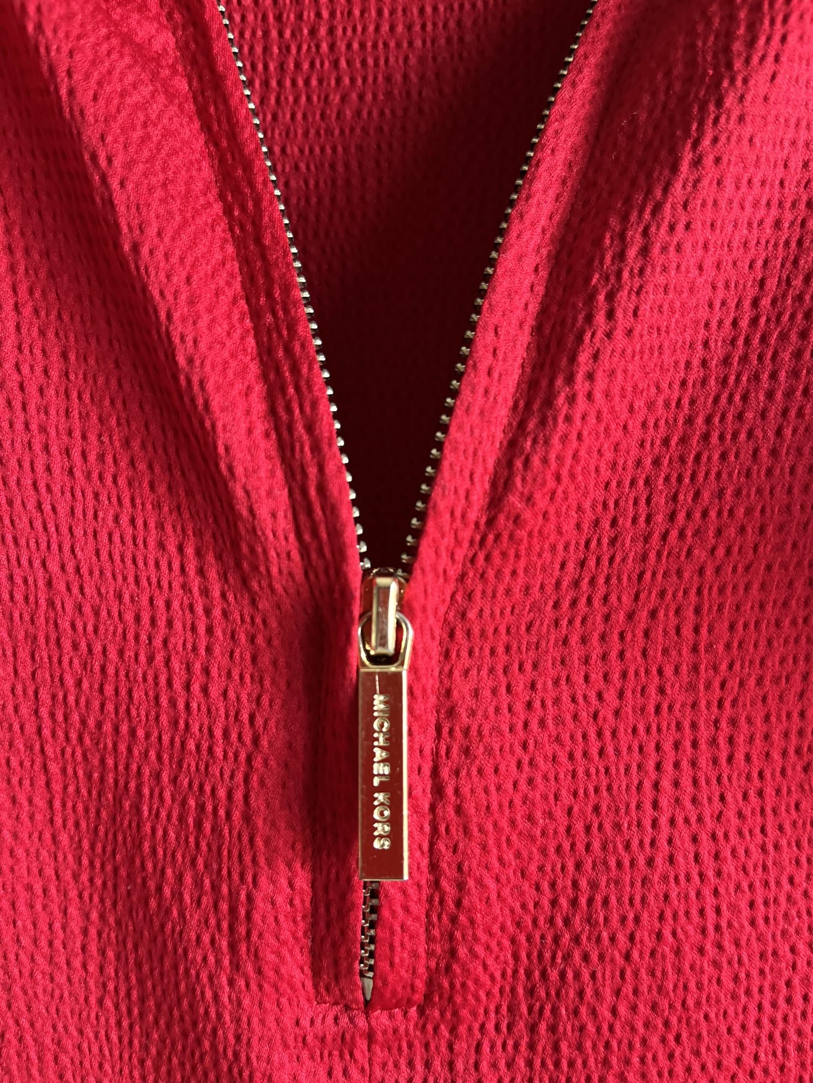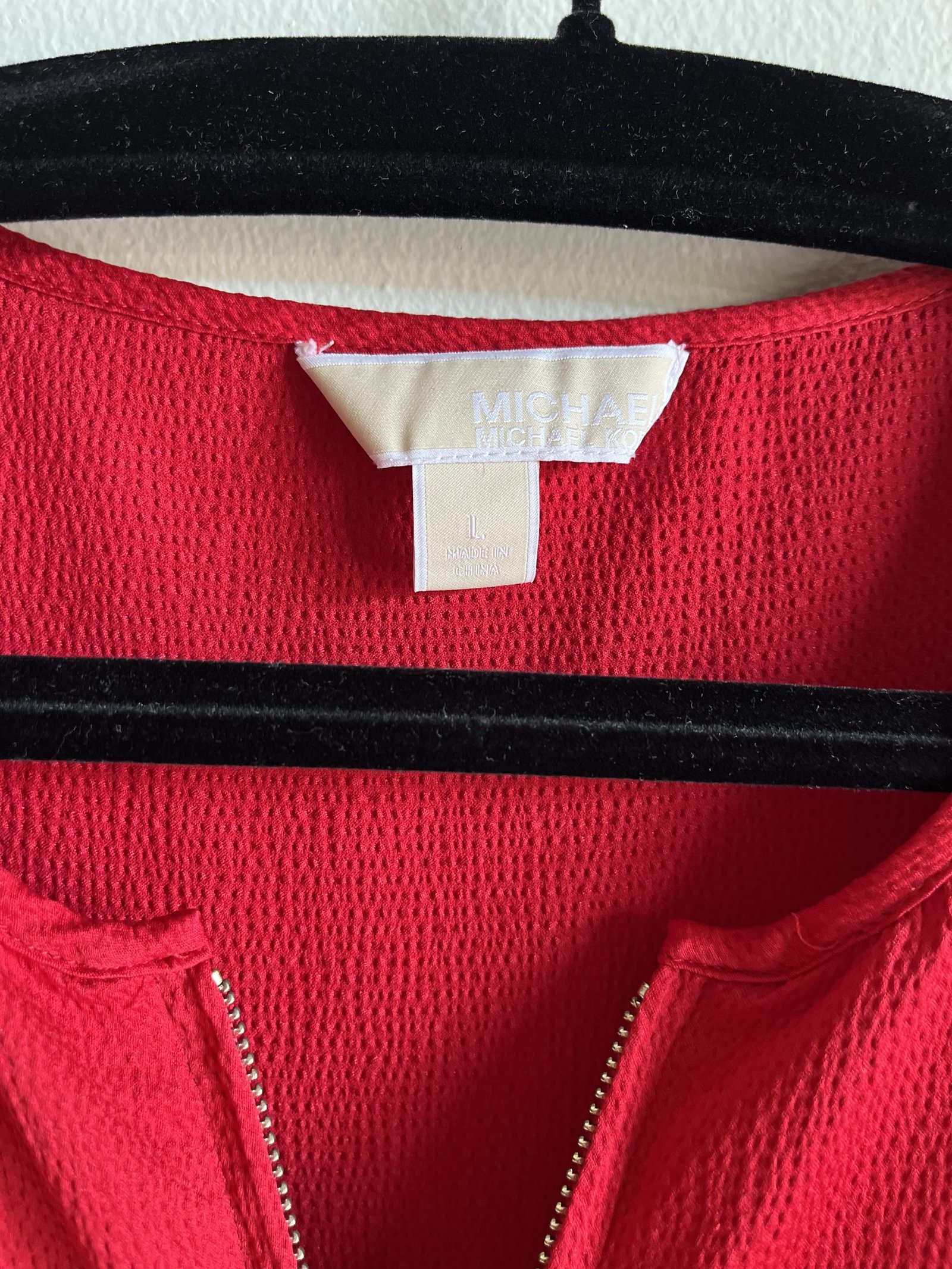Hermosa blusa Michael Kors roja, confeccionada con hermosa tela satinada y hermosas mangas. Tiene zipper en el escote. Talla L pero fue ajustada a talla M. Un solo uso.