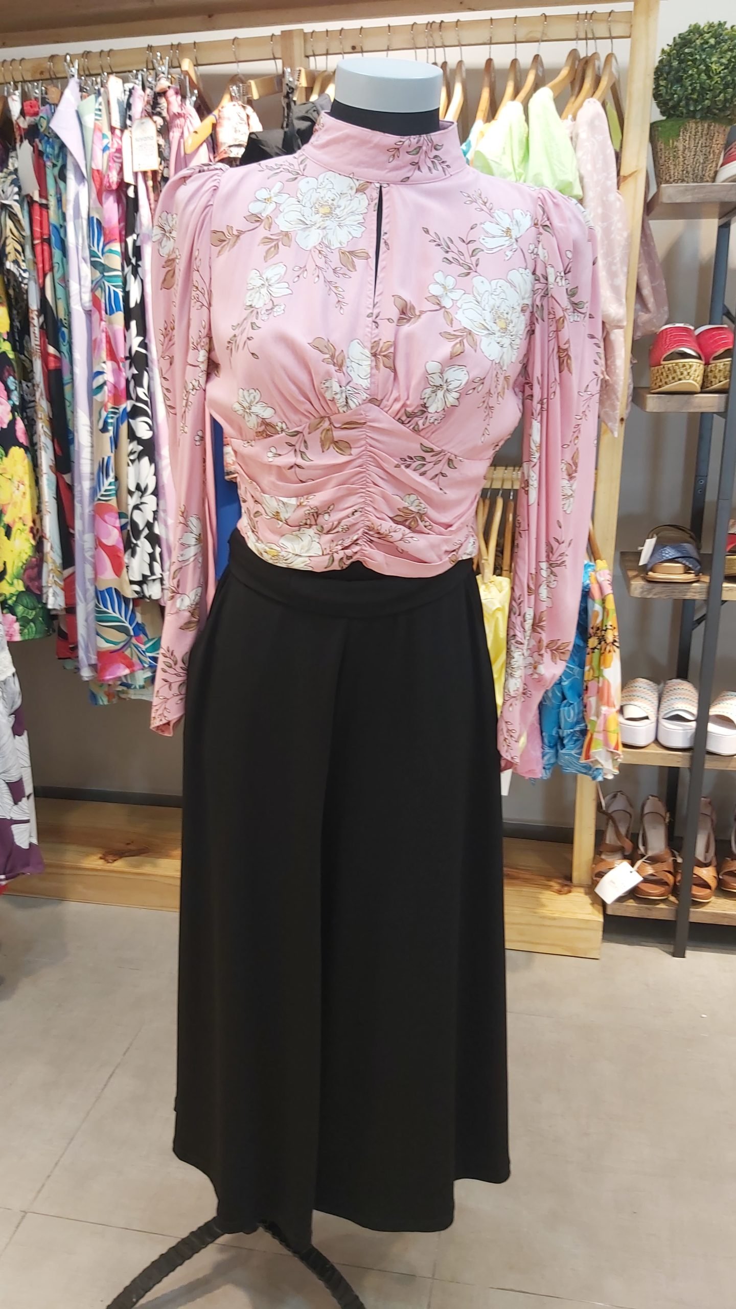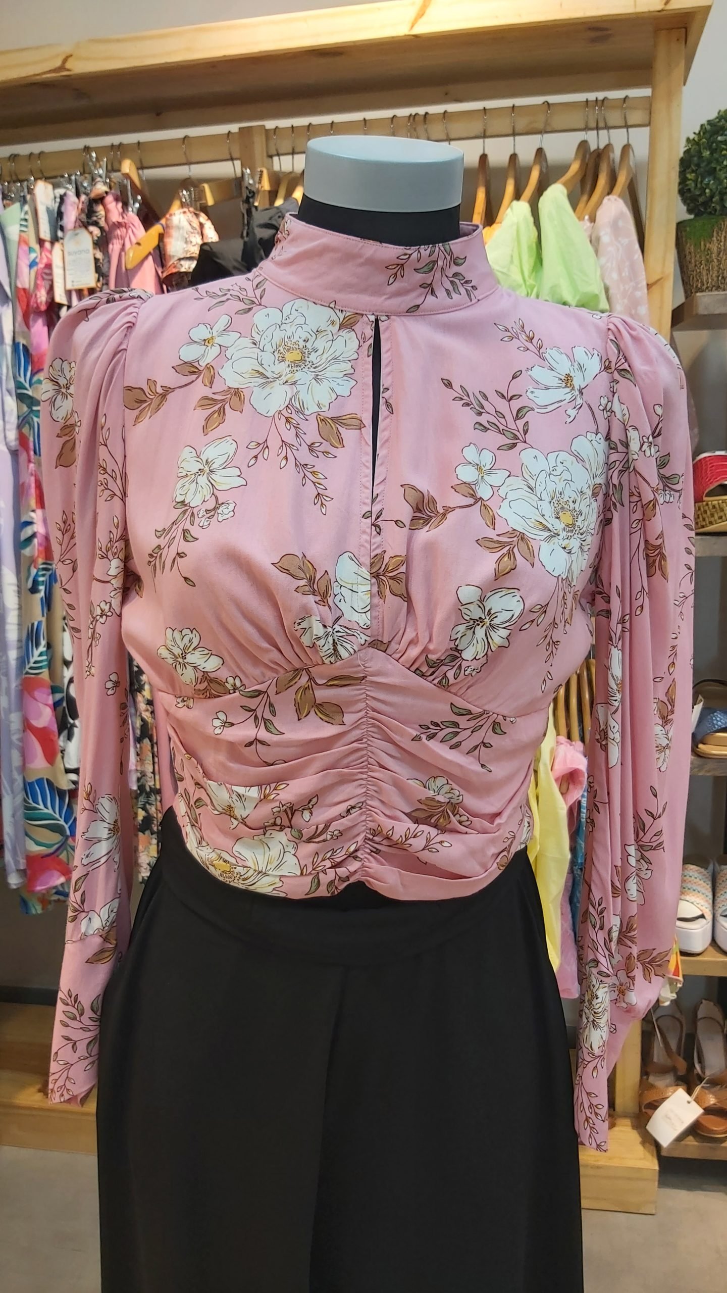 Blusa rosada floreada manga larga