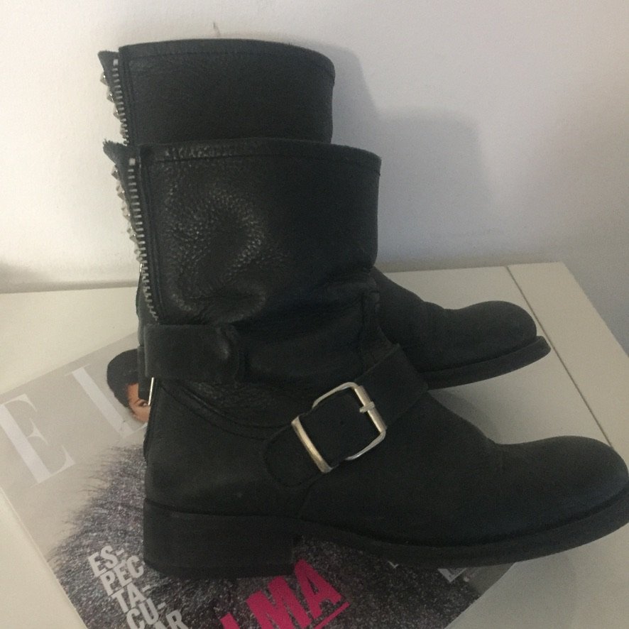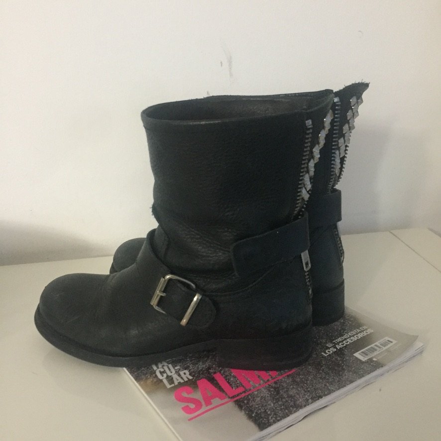 Botas de puro cuero , con taches, herrajes y cierre. talla 36