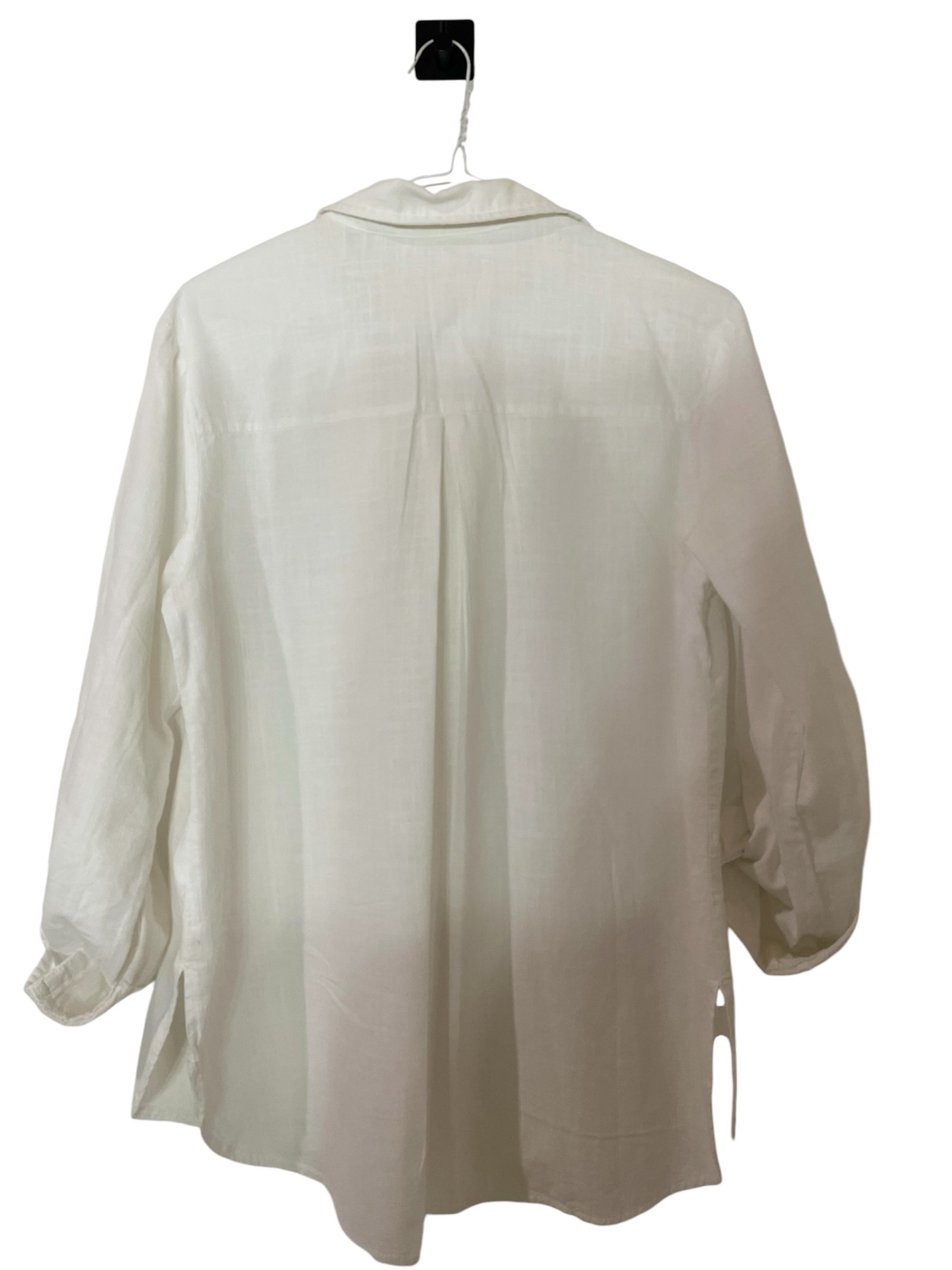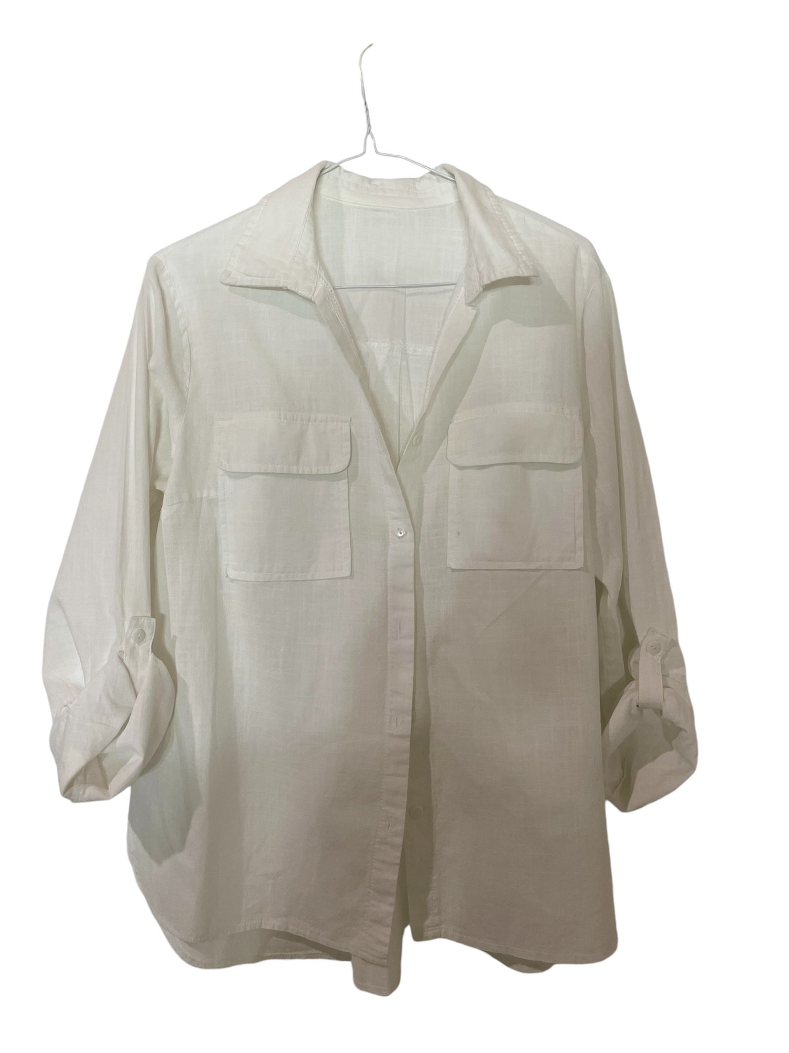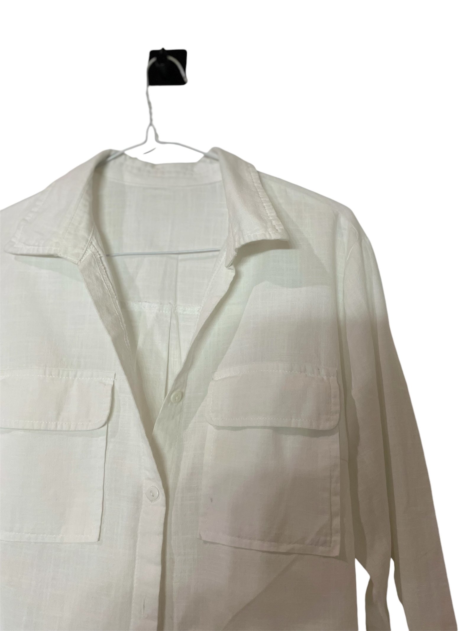Camisa blanca, tela de hilo. Talla small, pero le queda a una M.