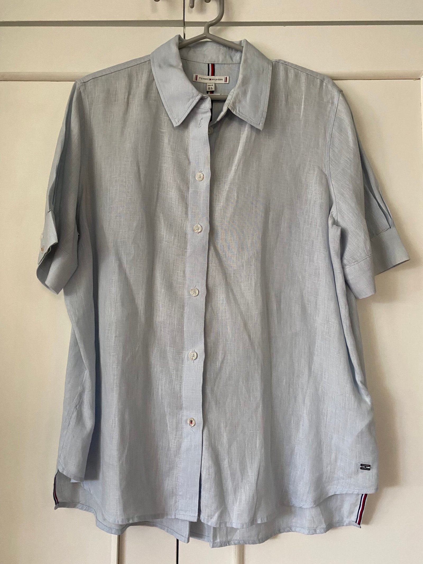 Blusa celeste de lino, marca Tommy Hilfiger