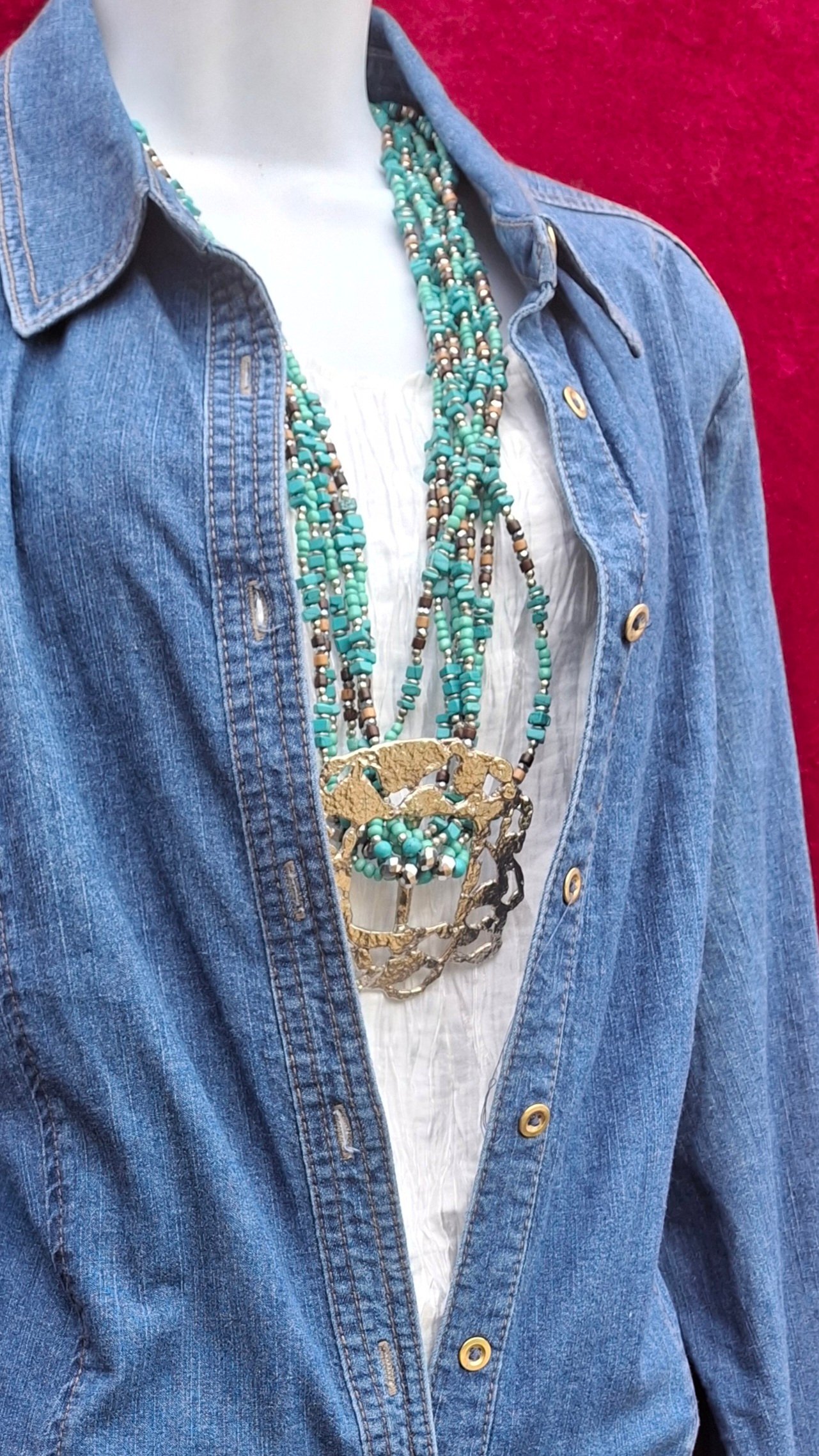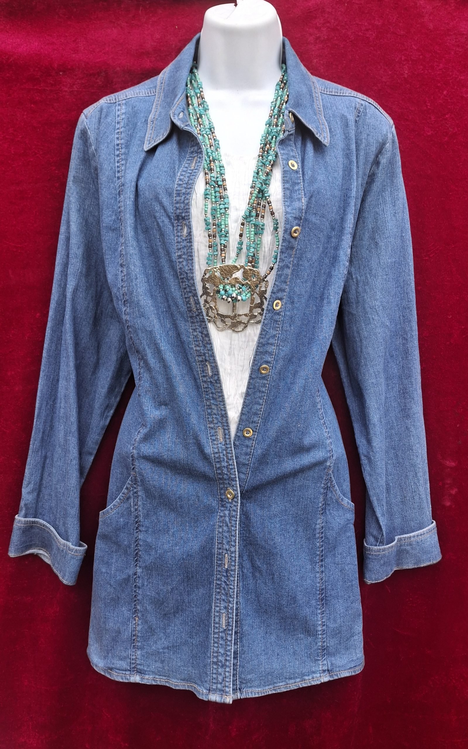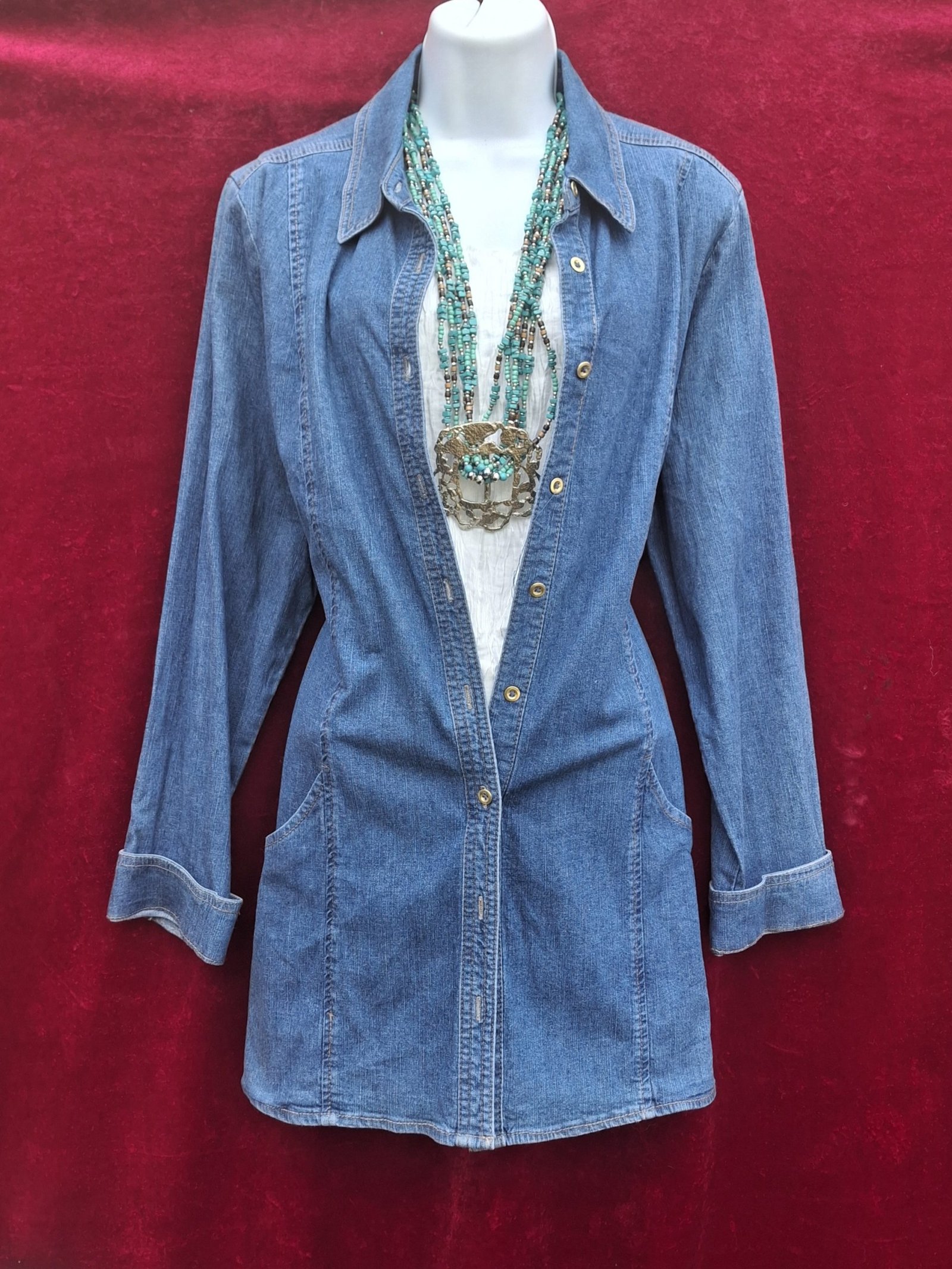 Chaqueta denim Dos bolsillos en frente en la parte inferior Botones en frente De largo llega hasta las caderas Holgado