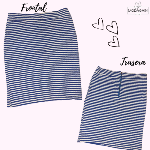 Falda de Dama Talla M Marca: Prestige Material: Tela suave y ajustable al cuerpo Características: Diseño de franjas horizontales en blanco y azul Cierre (zipper) en la parte trasera Cómoda, con un estilo casual y elegante Esta falda combina confort y estilo, con un diseño clásico de franjas que realza la figura. Ideal para un look casual o semiformal, perfecta para cualquier ocasión. ¡Un básico versátil para tu guardarropa!